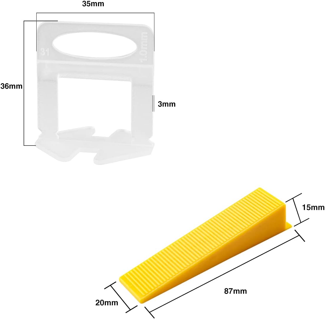 PACKAGE DETAILS:100 pcs red wedges, 300pcs 1/8(3mm) white clips and 1 pc pliers. Brown box package DISPOSABLE LEVELER SPACERS CLIPS: You can be sure to get the best value for money. The leveling system carries 300 clips to secure the tile position and prevent movement, save time and get perfect results each time you are installing tiles.Suitable for ceramic tiles with a thickness of 3 12mm (1/8-1/2), tile gap 3mm (1/8) SIMPLE, FUNCTIONAL AND WELL-BUILT – ANDGOO: Tile Leveling System kit includes tile leveling pliers, you can easily push tile clips and wedges, tightly fixed. The pliers are adjustable in 6 gear positions, flexible in use, metal material, and labor-saving and comfortable PROFESSIONAL TILE LEVELING SYSTEM: Tile Installation Set – great tools for floor/wall setting. The system ensures flatness between tiles avoiding movements during the mortar setting SKILLS:Kick off the clip from the side or tap the clip with a rubber hammer