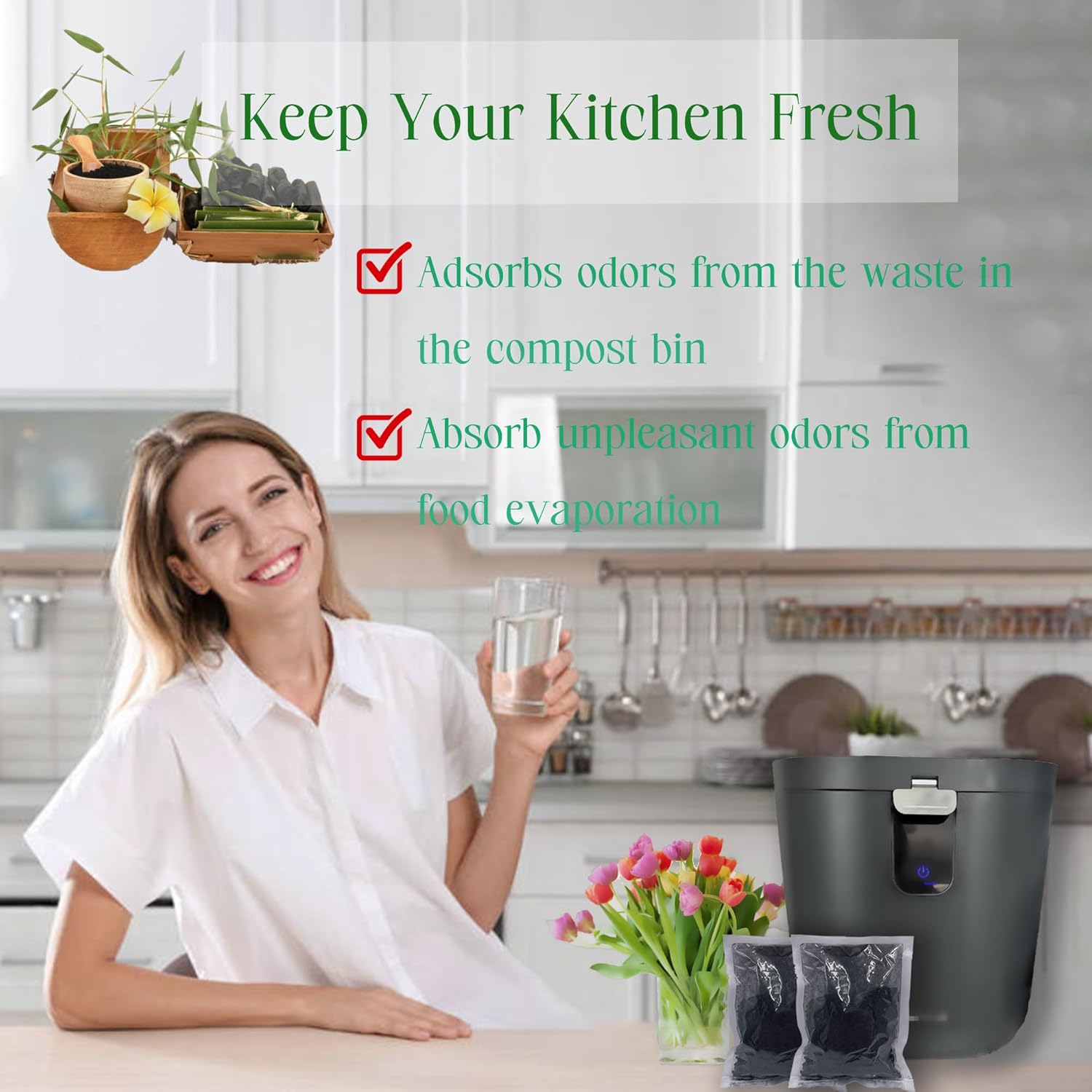 HIGHLY EFFECTIVE: This activated charcoal replacement adsorbs odors from the waste in the compost bin, and can effectively absorb unpleasant odors from food evaporation, helping to keep your kitchen fresh.