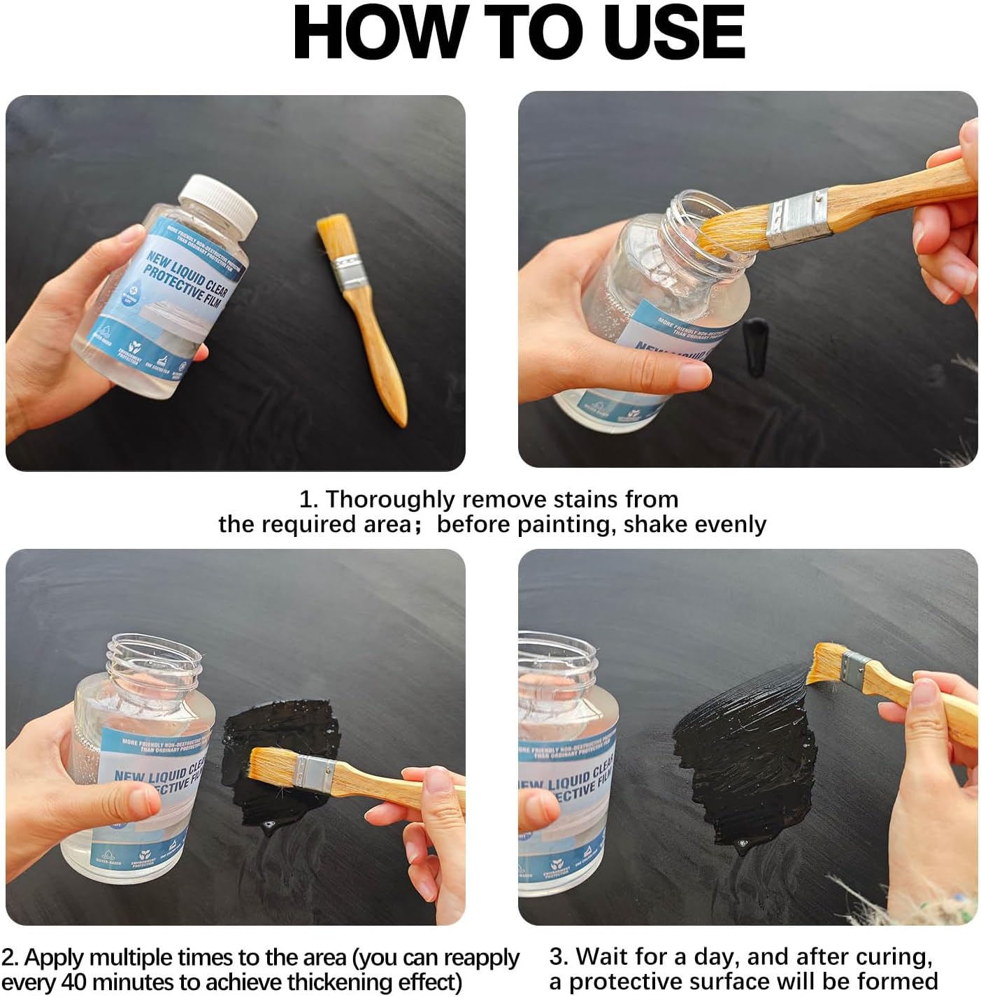 Adjustable Thickness: Contact paper has fixed thickness—no extra protection adjustment. This Liquid Clear Protective Film lets you control thickness: extra coats for more durability. Wait over 40 minutes between coats to cure, perfect for high-wear (drawing table) or lighter use (desk surfaces).