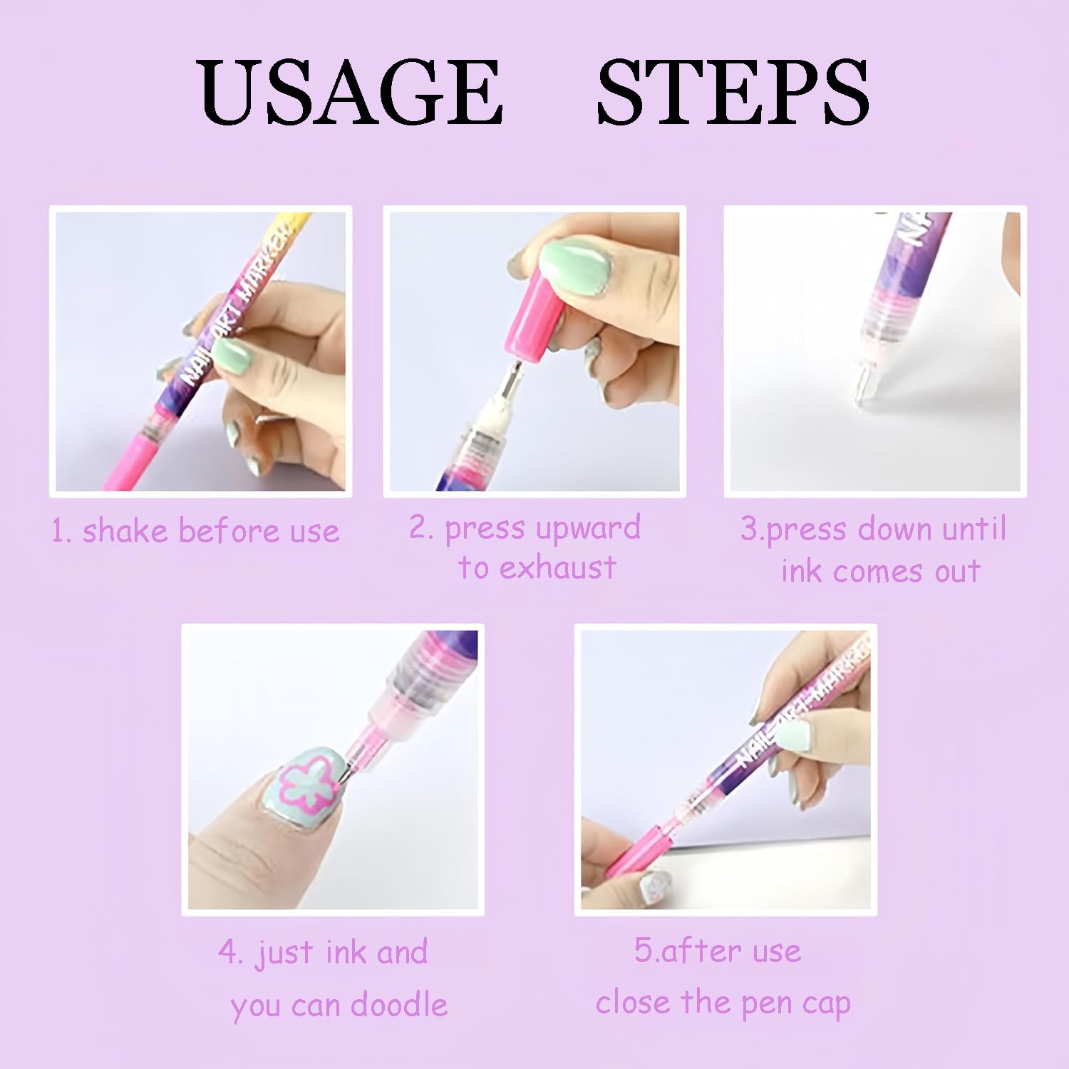 【Comfortable Ergonomic Grip】The ergonomic design provides a comfortable grip, helping to reduce hand fatigue during extended sessions. This easy nail design marker ensures you can focus on your creativity, making it an efficient DIY nail decoration tool.
