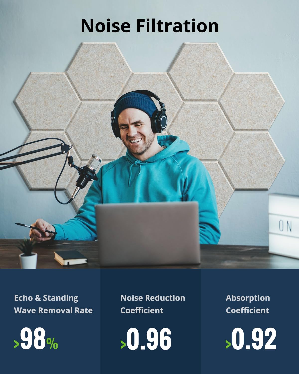HEXAGONAL STYLISH DESIGN: Add a touch of modern elegance to any room with our hexagon soundproof wall panels. These sleek and stylish hexagon sound proof foam panels for walls not only improve sound quality but also serve as eye-catching decorative elements, elevating the aesthetic appeal of your space.