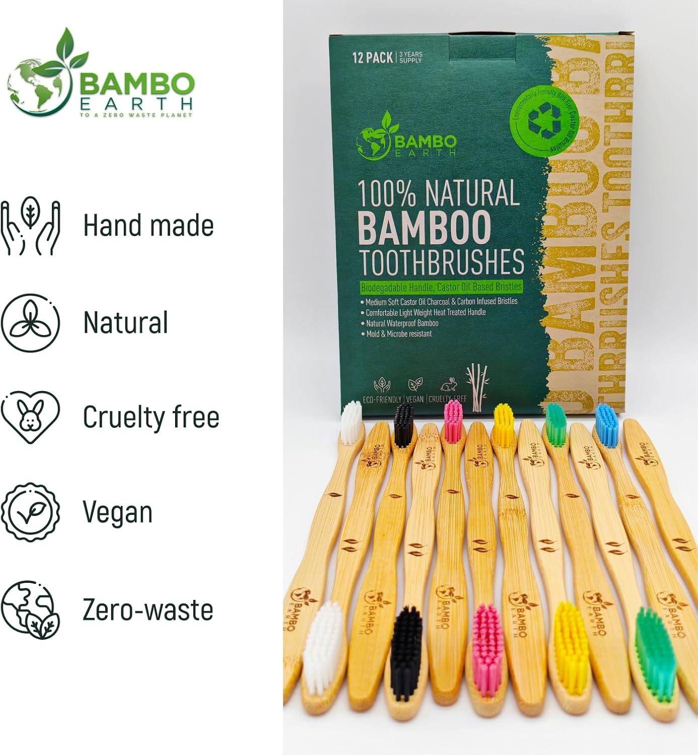 Value Pack for Families & Long-Term Use – This 12-pack provides a cost-effective and sustainable solution for families, guests, or bulk buyers, ensuring you always have an eco-friendly toothbrush on hand for a cleaner planet and healthier smile.