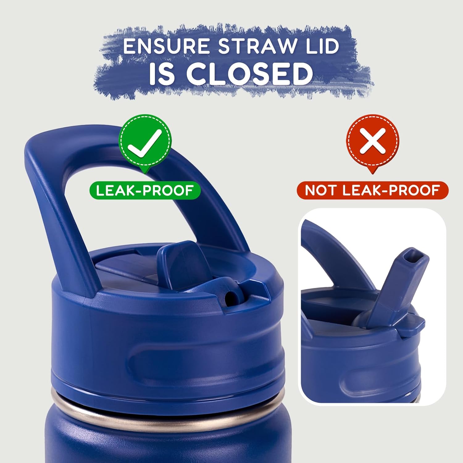 12oz Kids Water Bottle for School, Toddler Water Bottles with Straws, Insulated Water Bottles for Boys&Girls, Stainless Steel Vacuum Insulated Bottle for Kids, Leak-Proof, BPA-Free, Blue