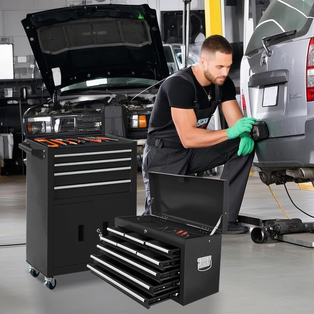 5 reviews for 13-Drawer Rolling Tool Chest with Double Doors, 2 in 1 Detachable Rolling Tool Chest with Drawers, Mobile Tool Cabinet Combo, Metal Large Lockable Tool Box for Garage Workshop (Black)
