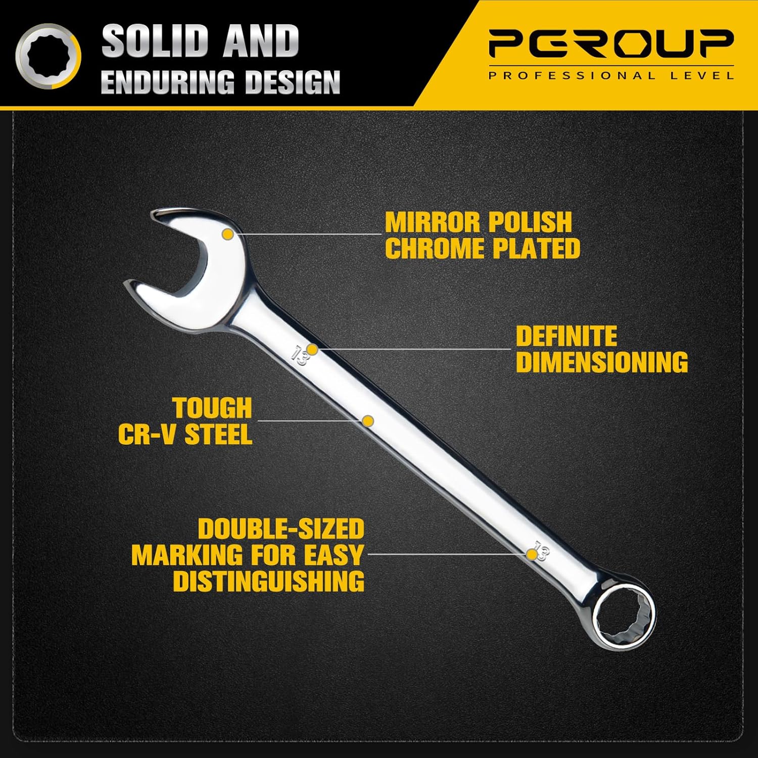 CLEAR SIZING & ANSI CERTIFIED: The PGROUP 13 mm wrench measures 7.2 inches, exceeding ANSI standards. Sizes are stamped on both sides of the wrench for quick identification and selection from your toolbox