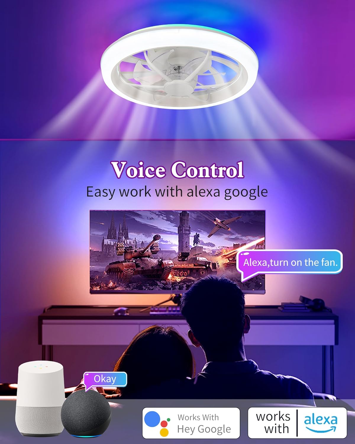 Easy Connect Smart Wifi Ceiling with Lights:You can download “Smart Life” or “Tuya Smart” to connect our ceiling fan. It can works with voice control via Alexa and Google Home. Easy to adjust the fan speeds or lighting color by simple voice control. Also you can set scedules by your daily life. Once connected via the app, the ceiling fan can be controlled remotely from anywhere through the app as long as the Wi-Fi network remains active. (Note:Not compatible with dimmer switches; supports 2.4GHz networks only.)
