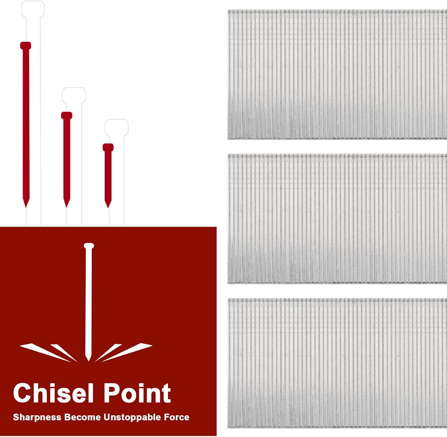 SHARP CHISEL POINT: Our 18 GA brad nails boast a sharp chisel Point and a T-head design, engineered for effortless penetration into materials like fabric or thin wood. This innovative feature not only reduces the risk of nail jams in your nail gun but also enhances your overall work efficiency.
