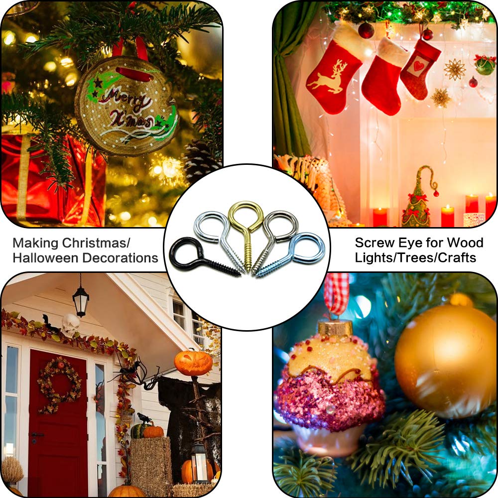 WIDE APPLICATION — Good screw hooks for workplace, patio, garden and home, both indoors and outdoors, can hang keys, small plants, bird feeder, small rope cords, Halloween pumpkin lantern string lights, Christmas decor, holiday ornaments, picture frame, DIY jewelry making, arts & crafts projects etc.