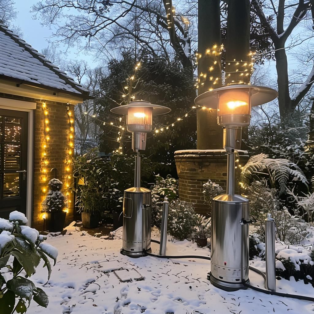 Attractive Design: The mushroom shape and metallic finish enhance the patio heater’s appearance while providing a large coverage area for efficient heat reflection