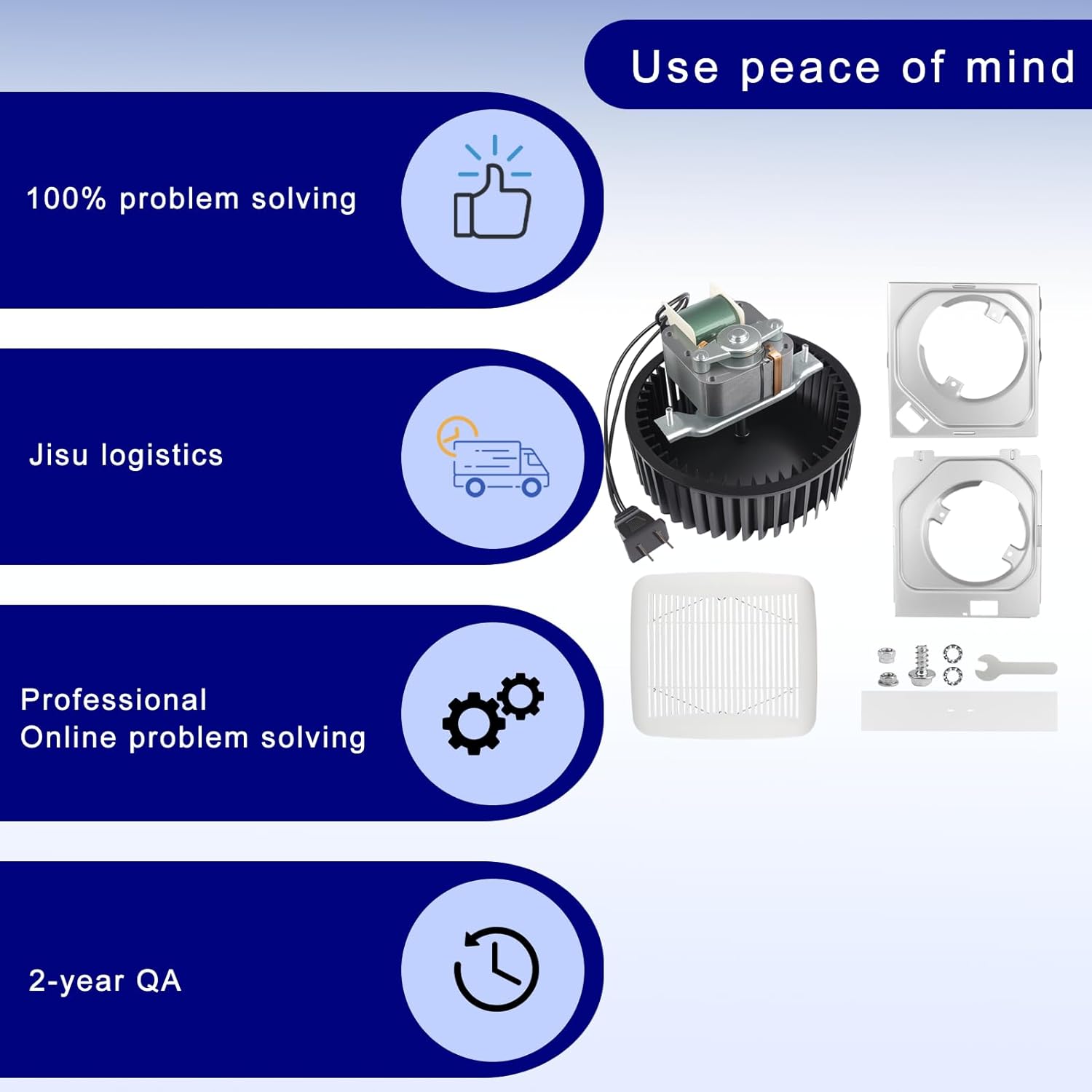 Core upgrade: Our bkr60 quickkit ultra-quiet bath fan replacement motor is made of high-quality materials, which is not easy to be damaged, the impeller is not easy to absorb hair, and the service life is longer. Our power has increased by 20%, and the air movement is as high as 60CFM. With 7-1/2 “x 7-1/4” fan housing or 8-1/16 “x 7-3/8” housing. 10-3/4 inchx7-4/5 inch grille. (not suitable for 8 inch x 8-1/4 inch houses)