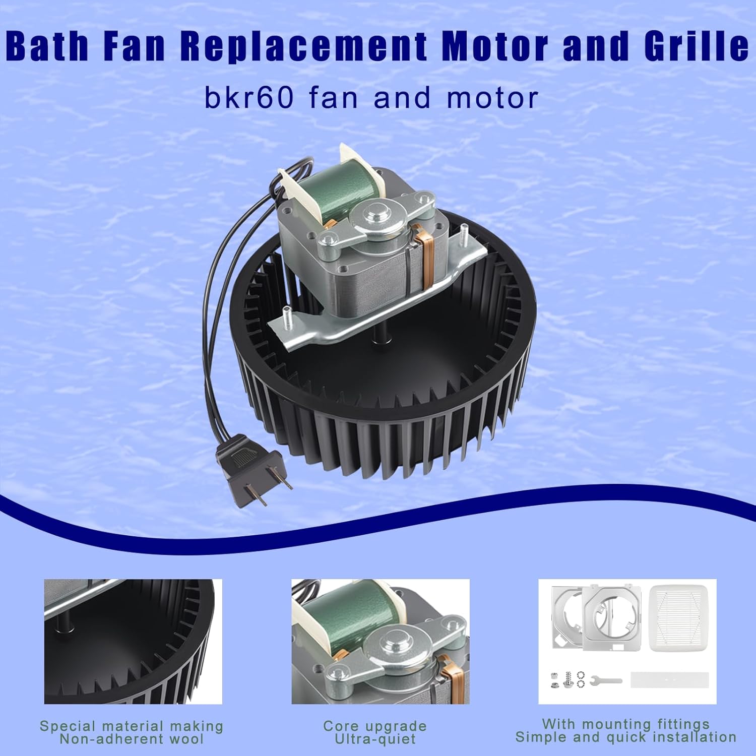 2025 Upgraded BKR60 Bath Fan Replacement Motor and Cover/Grille Compatible with Broan 670 671 688 689 NuTone 693 695 696N 695C Bathroom Exhaust Fan 3.0 Sones 60 CFM 2-Year Qa