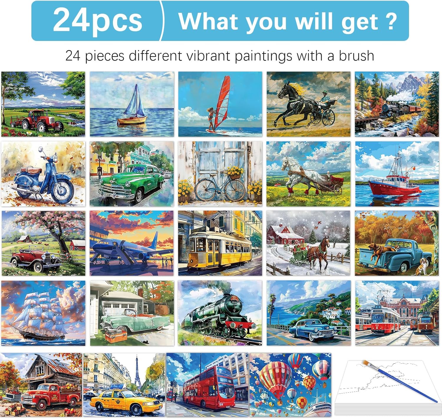 What you will get: You will receive 24 pieces of reusable water paintings for dementia Seniors and 1 painting brush, the quantity is enough for the elderly or adults to paint in daily, give them some interesting painting toys to play.