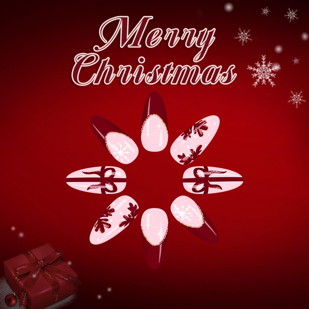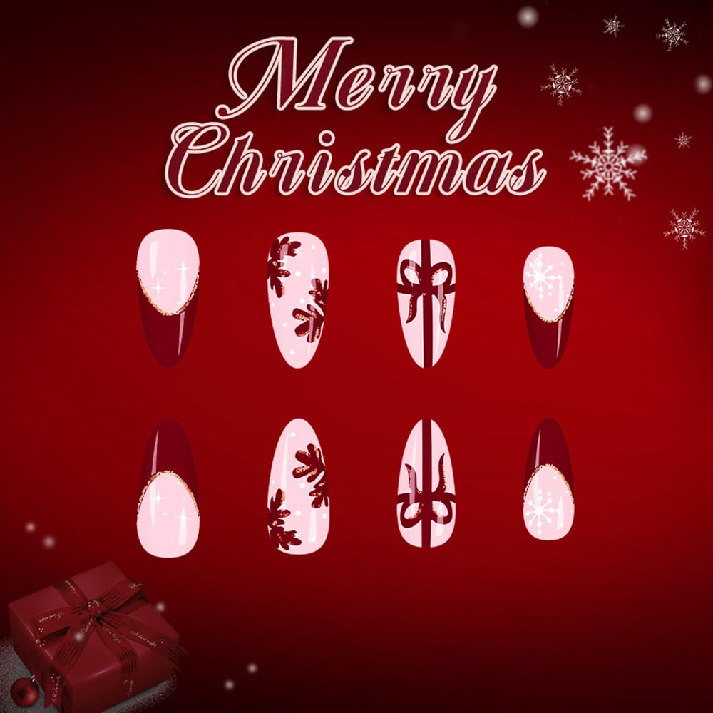 8 reviews for 24Pcs Christmas Press on Nails Short Almond ZIFANHU Red French Fake Nails Press ons Pink Nail Tip Glue on Nails Acrylic Nail Kit False Nail with Bow Snowflake Stick on Nail for Women Manicure