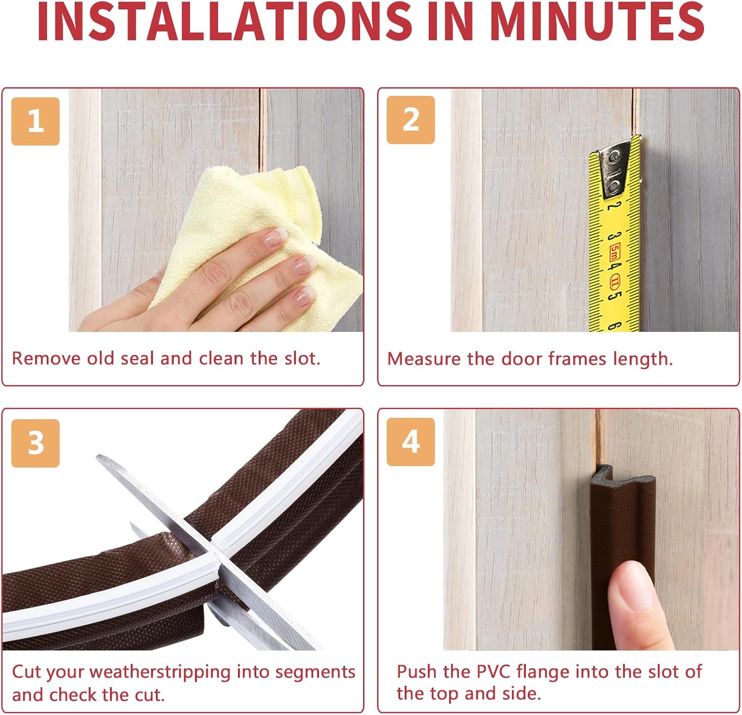 Wide Applications: The door seal can be widely applied for side gaps of sliding doors, security doors, screen doors, patio doors, glass doors, windows, wardrobes, closets, cabinets, etc. High-quality design, in addition to sound insulation, dustproof, waterproof, thermal insulation, and prolonged service life.