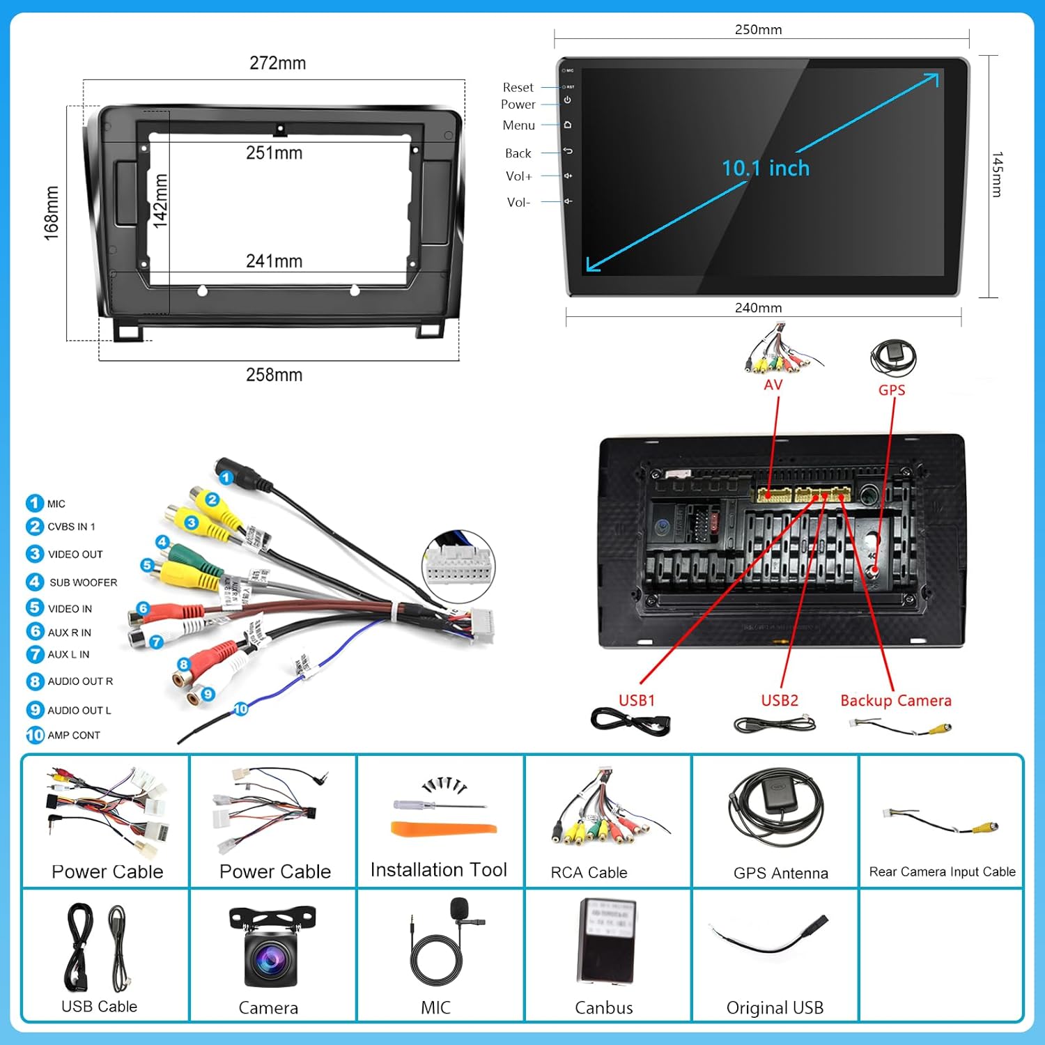 Car Radio for Toyota Sequoia/Tundra Upgrade: 10.1 inch touchscreen car radio fits for Toyota Sequoia 2008-2019, for Toyota Tundra 2007-2013. No need additional frame, plug and play