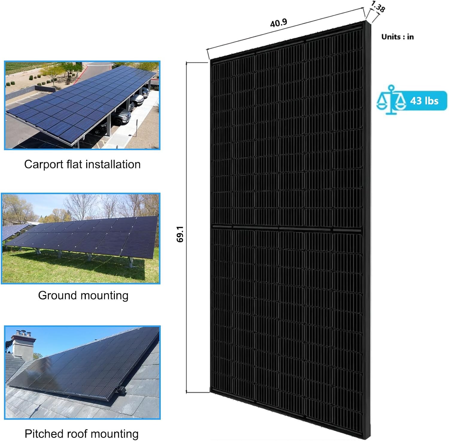 【Widely Use】 : 360W solar panel is ideal for off-grid,on grid or hybrid solar system,can be an ideal facility used in RV, Tiny House, marine, household power supply, commercial building etc. It helps to save power consumption and save you much more in the long future.