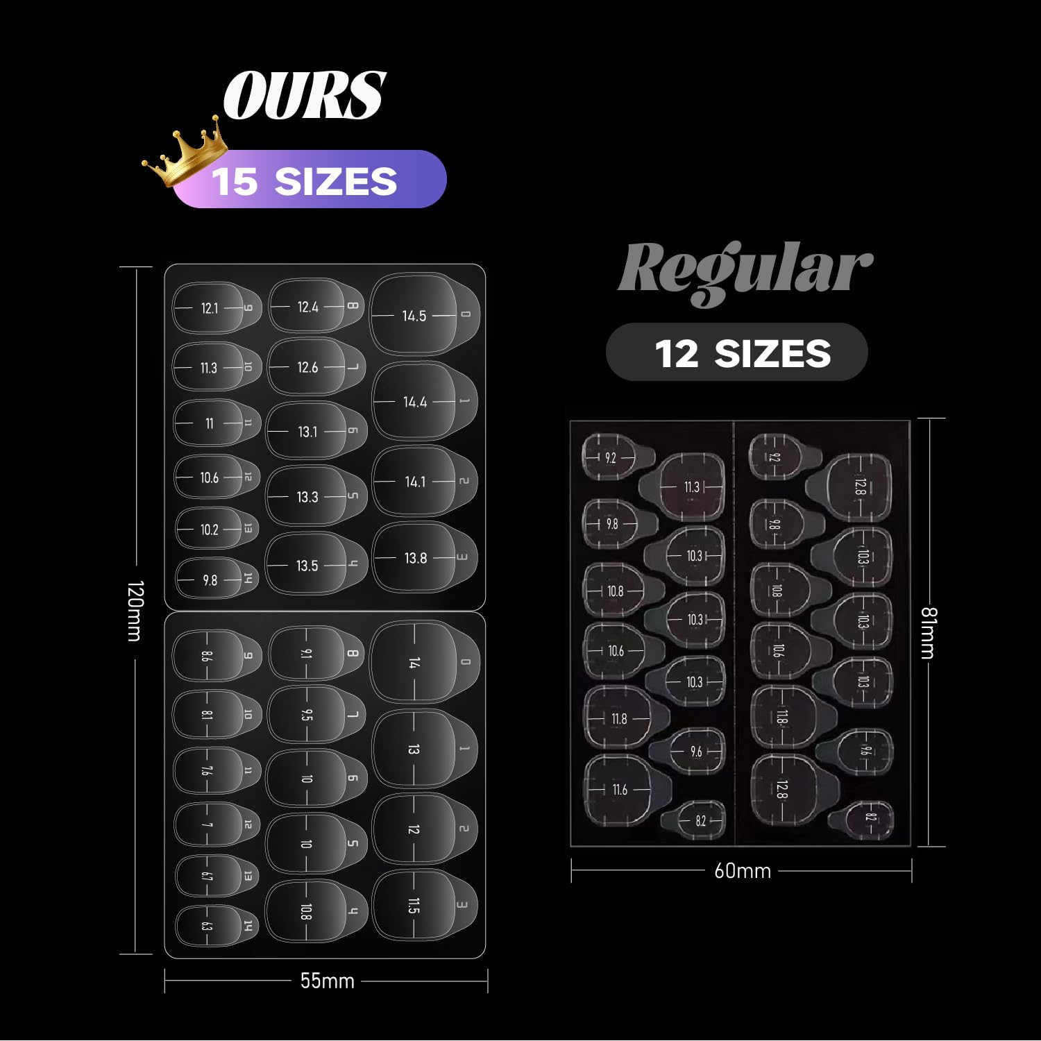 Our adhesive tabs are made with high-quality Korean polymer adhesive, offering an 85% increase in durability and a 95% improvement in tight adherence. This advanced formula ensures a strong, long-lasting hold that keeps your nails flawless through any activity.Featuring a numbered handle for easy size selection, our ultra-thin tabs are just 0.3mm thick and completely transparent, providing a natural, seamless look.Designed specifically for Western nail shapes, each sheet includes 15 sizes to ensure the perfect match for every nail tip.