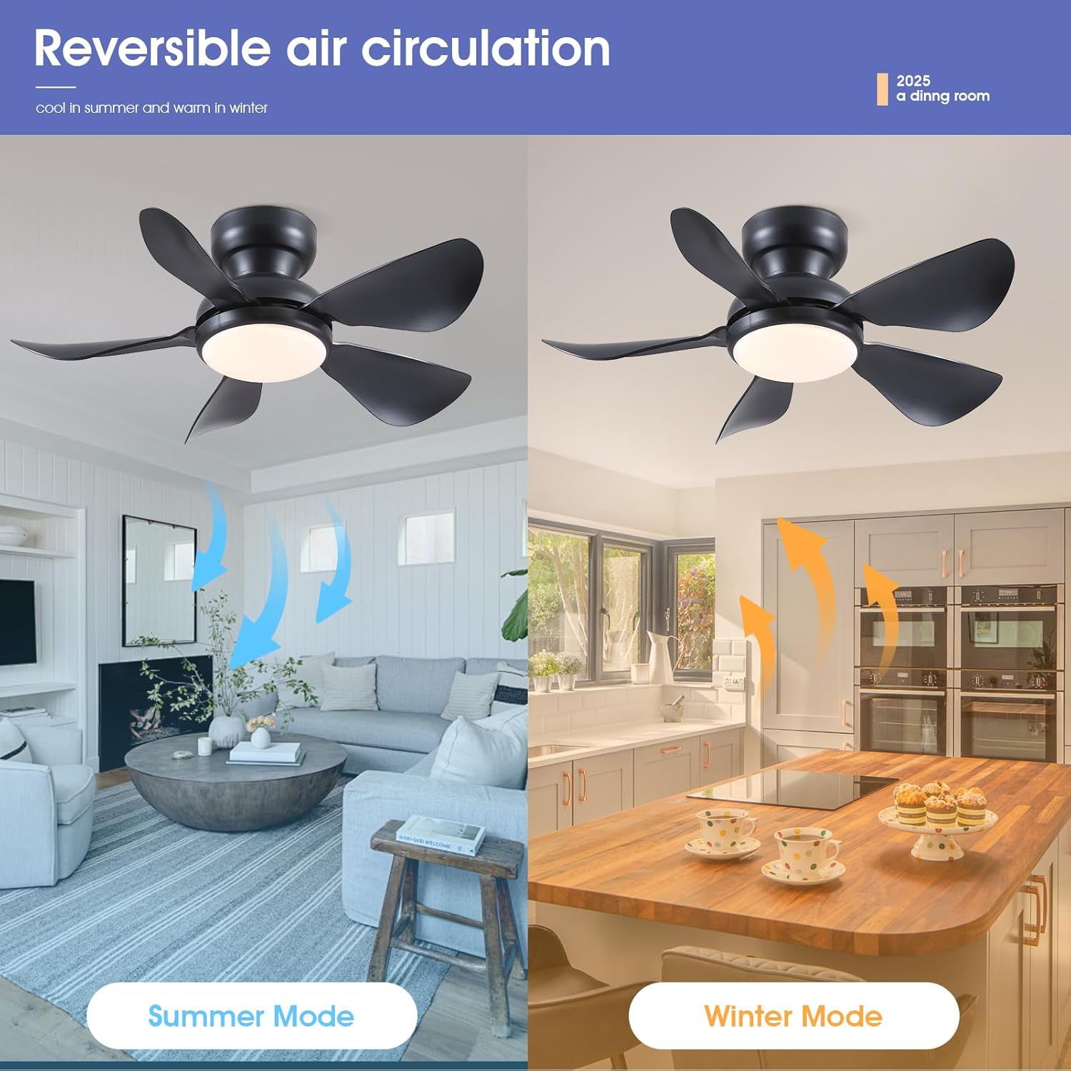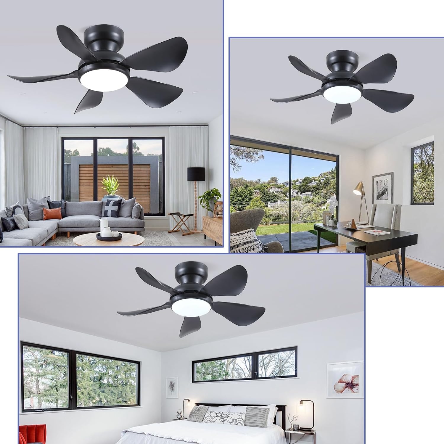 10 reviews for 32 Inch Modern Ceiling Fans with Lights, Small Flush Mount Ceiling Fan with Light and Remote/APP Control, 5 Reversible 6 Speeds Curved Blades, 3 CCT Dimmable Lights for Bedroom, Black