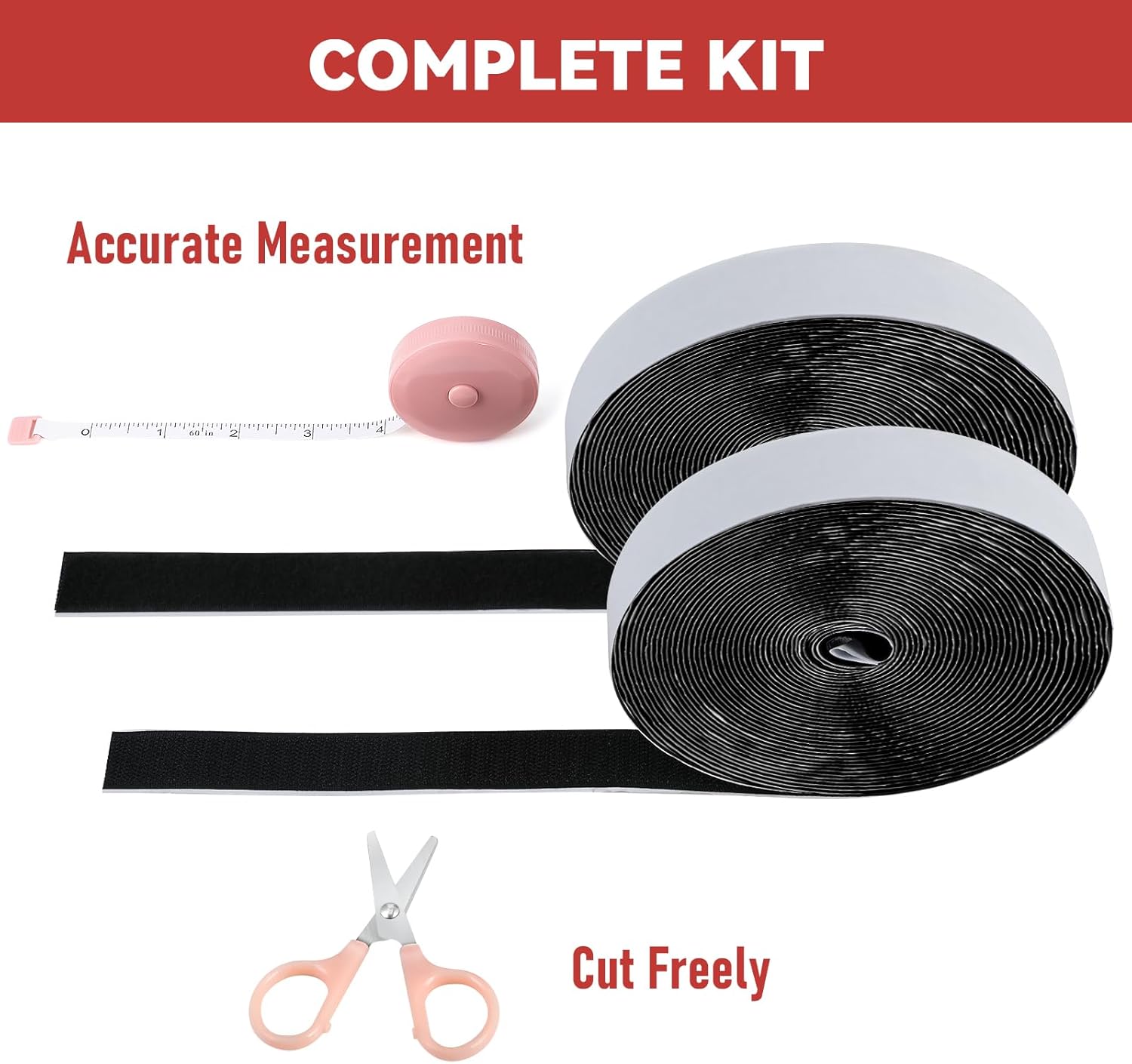 【Cut Freely】:One set contains 1 roll of hook tape and 1 roll of loop tape (1 set 32ft*1in=96 set 4in*1in). The box also comes with a pair of scissors and a retractable tape measure for easy cutting measurement.