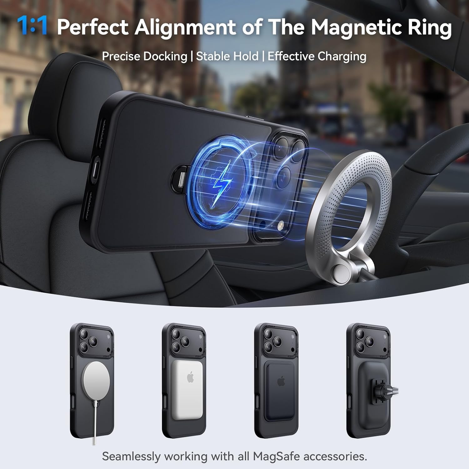 [18N Powerfully Magnetic] This case for iPhone 17 Pro with magnetic aligns perfectly with your phone for a seamless attach experience and safe wireless charging. It locks instantly and securely onto MagSafe accessories like chargers, power banks, and car mounts—ensuring a firm, wobble-free connection wherever you go. It boasts 40% stronger magnetic force (18N) than ordinary iPhone 17 Pro magnetic phone cases for a stable connection