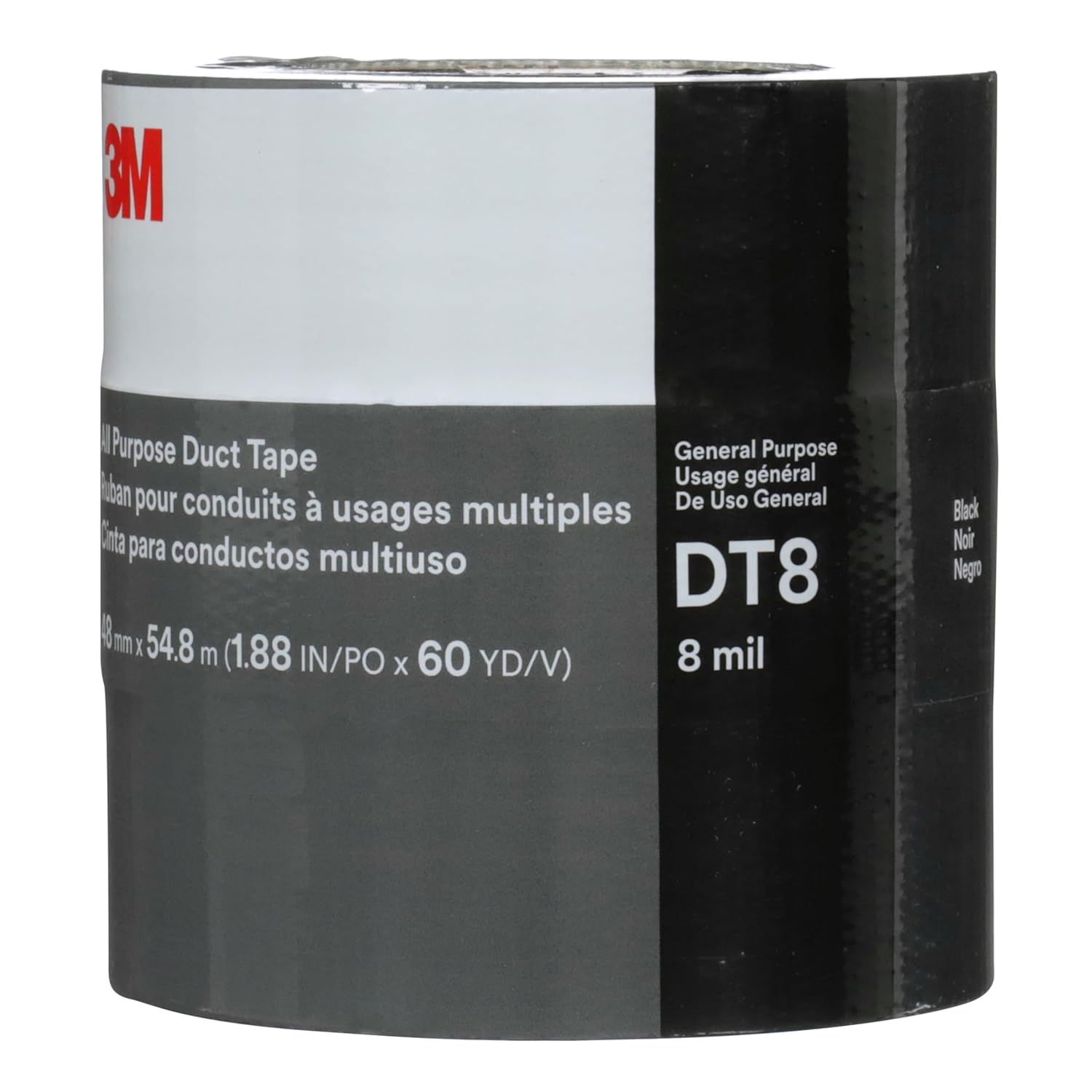 13 reviews for 3M Duct Tape DT8, 3 Pack, Industrial Strength, Multi-Use, Black color tape, 1.88″ x 60 yd, Tear by Hand, Professional Grade Adhesive, Perfect for HVAC, Bundling, Moisture Proofing, and Reinforcing
