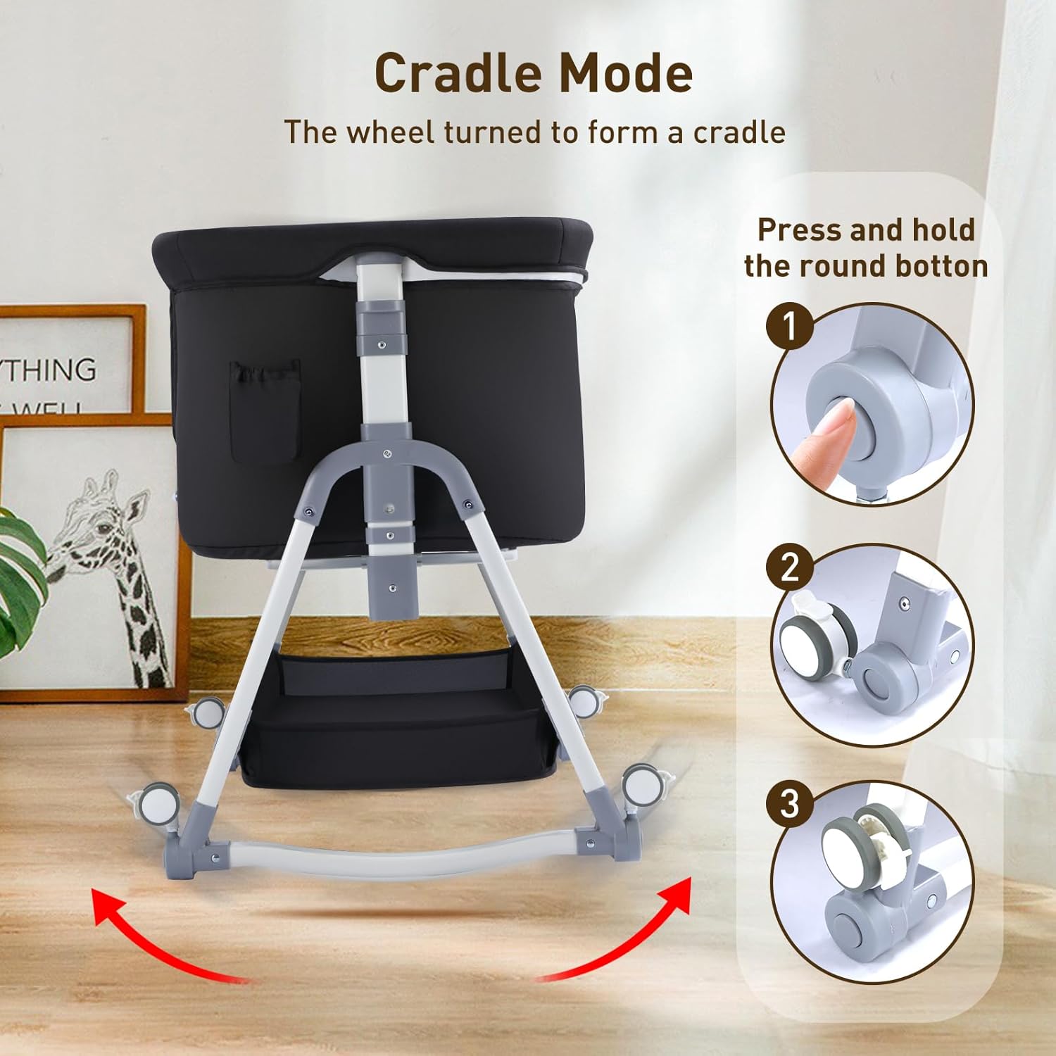 Baby Bassinet with WheelsRocking Bassinet for BabyBlack Baby Bassinets Bedside SleeperBaby Bedside Bassinetbedside bassinet with storage