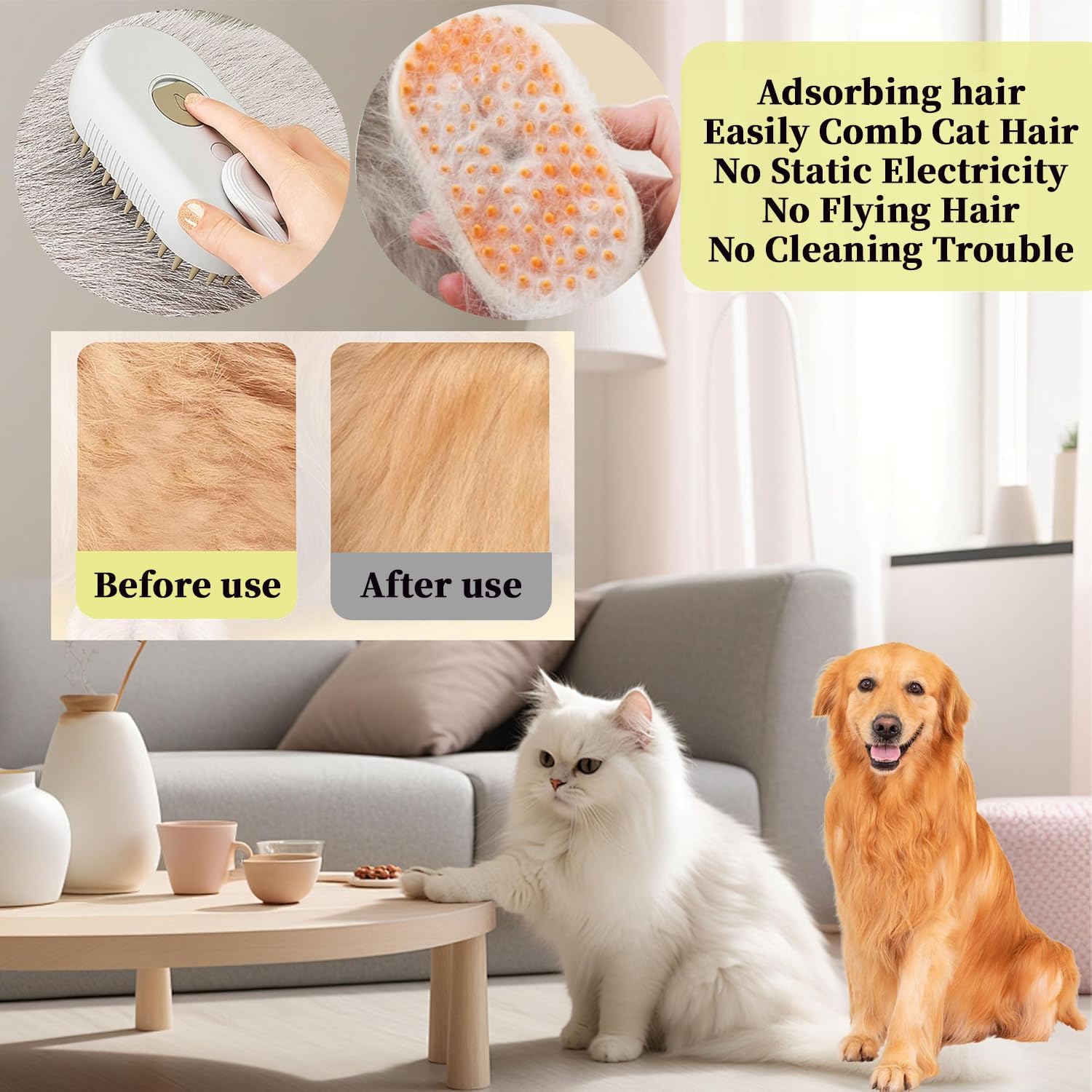Versatile Pet Grooming Tool: This 4-in-1 cat and dog brush combines the functions of a pet spray brush, a grooming comb, a hair removal comb, and anti-static making it a versatile tool for all your pet grooming needs