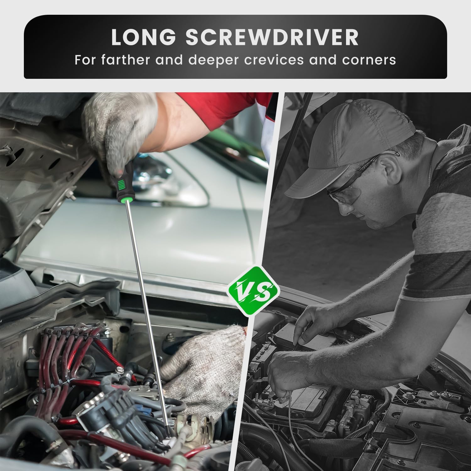 【HIGH QUALITY】: Made of chrome vanadium steel with heat treatment,high hardness, large torque, long service life. 12″ Extra long size slotted & phillips screwdriver,ideal for hard to reach awkward areas.