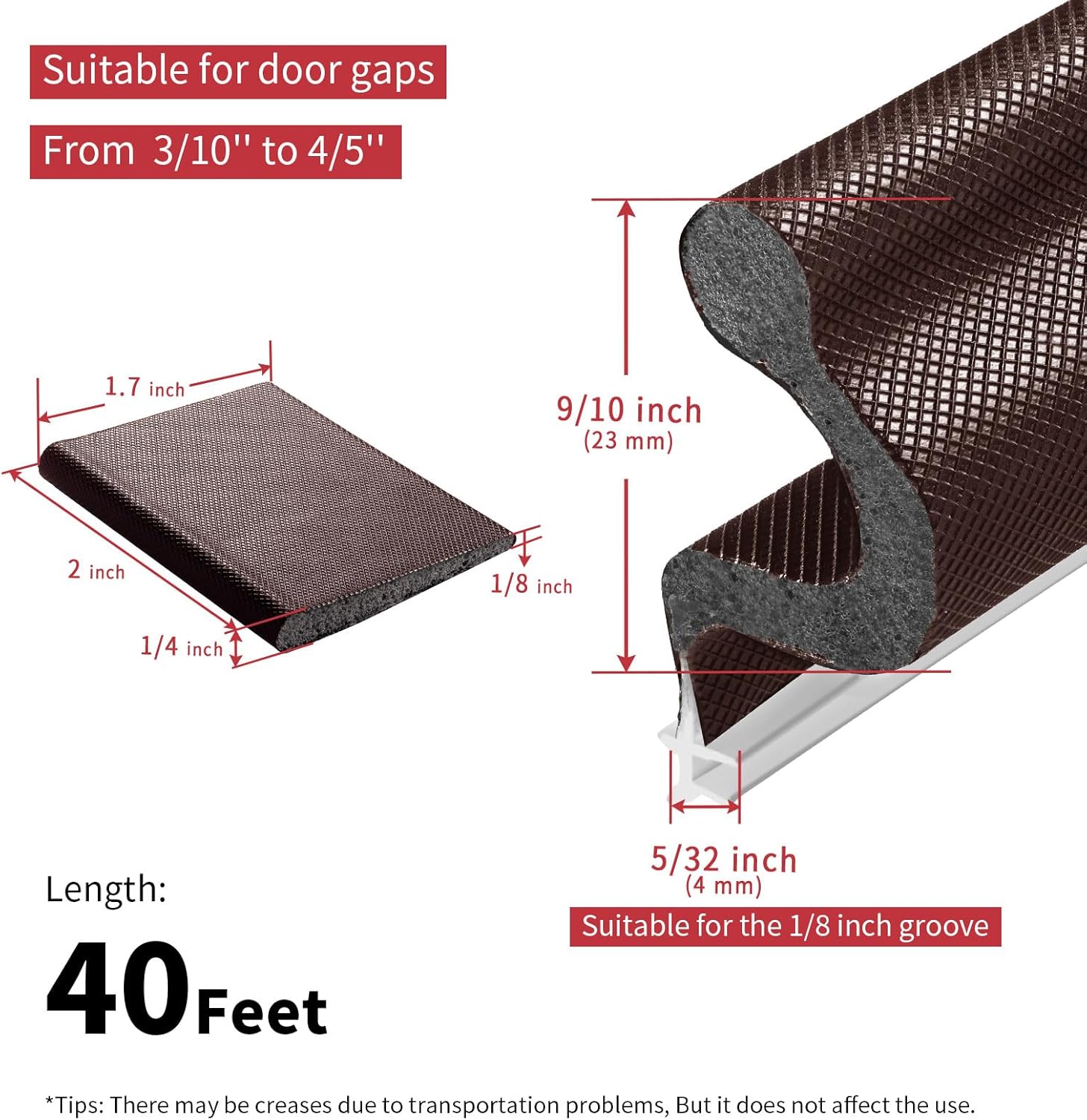 【Extra Long Weather Stripping】Total length is 40 feet and 8 PCS door corner seal., it’s long enough to use for different size doors. Our kerf weather stripping for doors spine is 5/32 inch, it is suitable for the 1/8 inch groove and used for door gaps from 3/10″ to 4/5″ (8mm to 20mm). Better sealing performance than the other brand’s V-shaped replacement door seal strip for door frame. Please ensure that you measure the gap before purchasing.