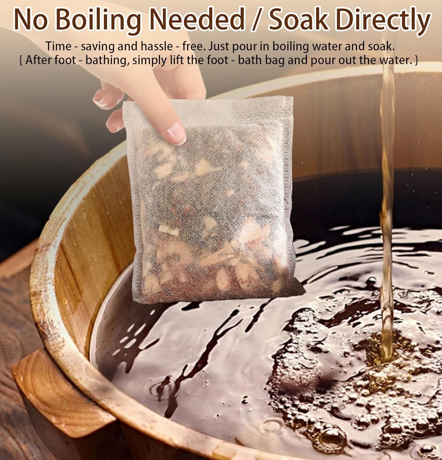 Usage : Soak in boiling water above 90°C for 5 minutes and wait for the water temperature to cool down to 45°C,15-30 minutes each time,it 3 to 5 times per week,Use as foot soak or full body bath as you like or for your convenience,Put the bag directly into the water when using it.The natural ingredients will work their effect, helping to relieve stress, reduce fatigue, and promote overall well-being.