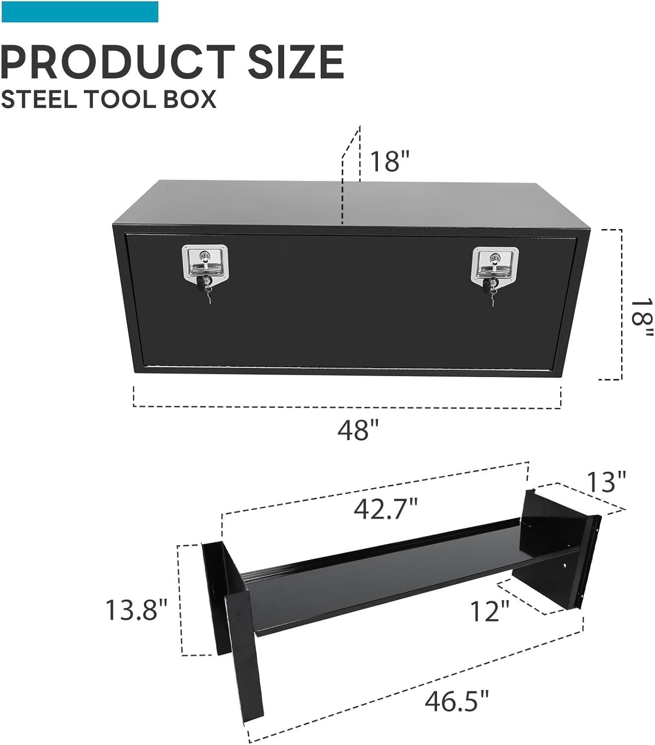 8 reviews for 48 Inch Steel Black Underbody Truck Tool Box w/Shelf,Double-deck storage Truck Storage Box,Waterproof Truck ToolBoxes With Lockable T-Handle Latch for RVs, ATVs, Trailer & Truck (48″x18″x18″)