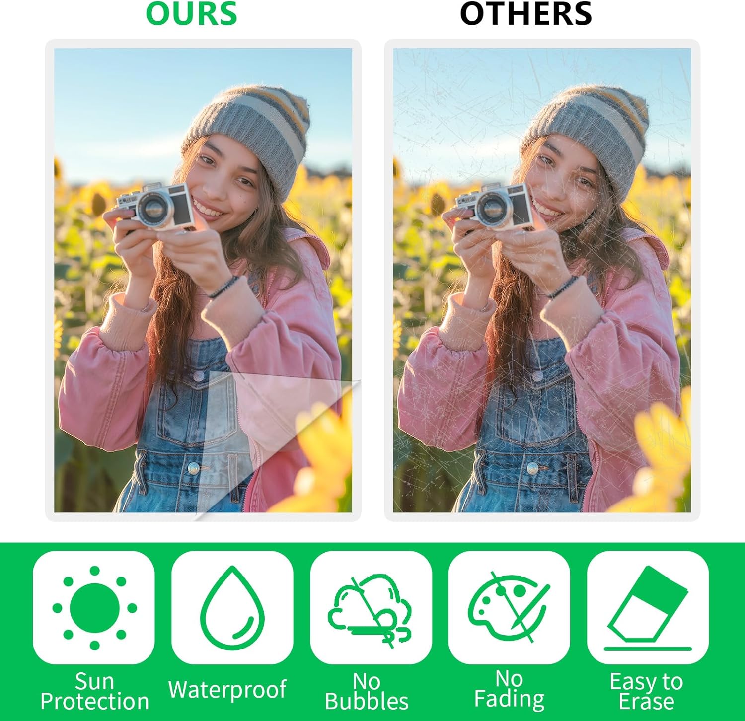 【Easy To use】- This laminating sheet is easy to operate and not easy to produce bubbles. You can cut it to the required size according to actual needs. Steps for use: First tear off a little bit of the backing film, then gently place the adhesive part on top of the photo. Finally, tear off the remaining backing film and press the paper until it is perfectly bonded.