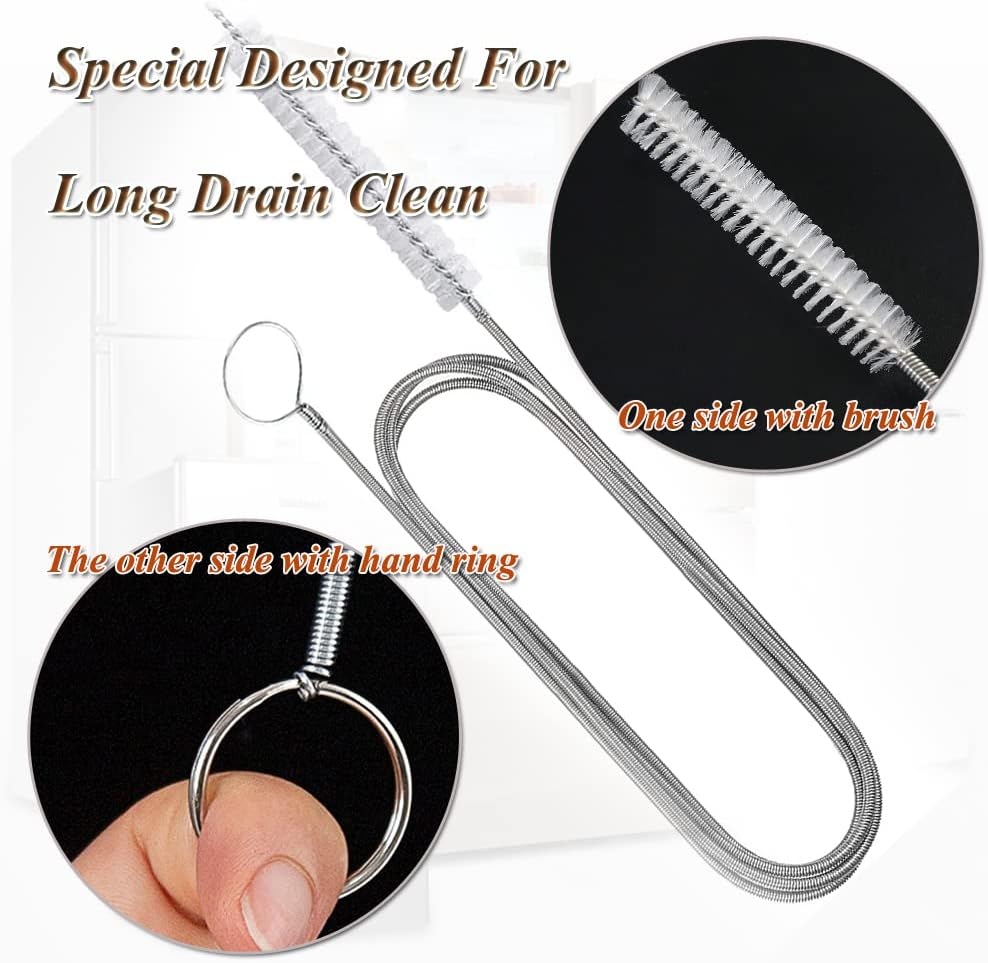 SPECIAL DESIGNED FOR LONG DRAIN CLEAN: Our hose pipe brush has a total length of 57 inches, one side with brush and one side with loop, the hand ring is designed for easy extraction. It is flexible, which can be easily through, works great at cleaning around the hard-to-reach narrow pipes/ tubes. Even can be bended to work for curved tubing.