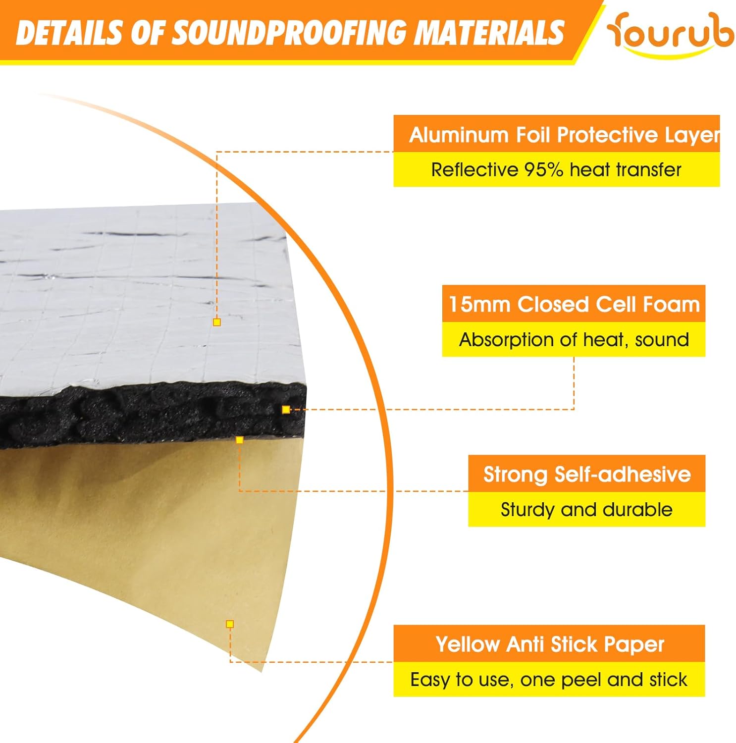 Fourub 15MM Car Sound Deadener Insulation Mat – Heat Insulation and Sound Deadening Foam Design! Strong Adhesion and Easy Installation!
