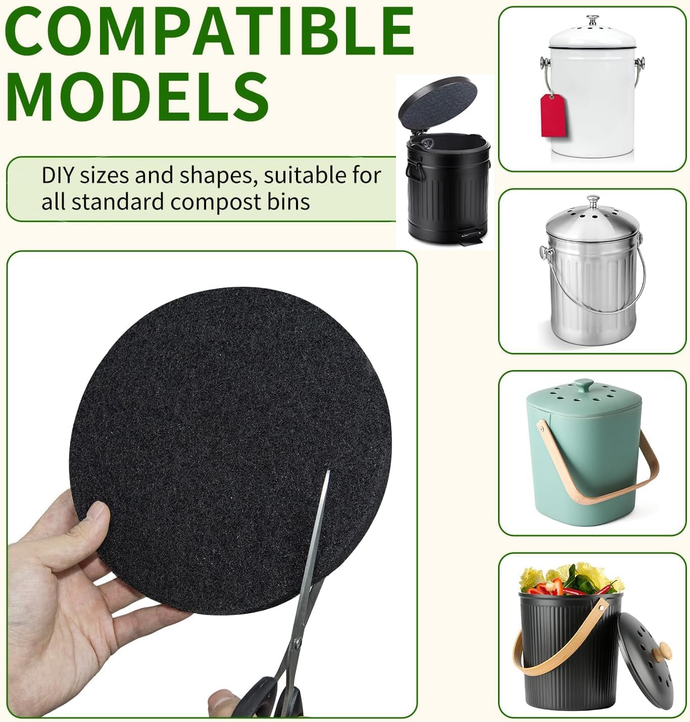 【Easy Installation Compost Bucket Filter】Perfect replacement charcoal filters for our compost bucket / countertop compost bin. Our filters for kitchen compost is easy to install and remove to wash or replace. Simply cut-to-fit for DIY installation.