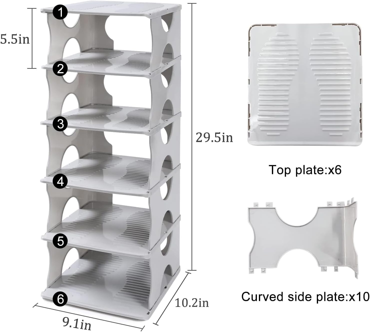 Tips:If you buy one set, we suggest that you assemble it in one column and six layers;If you buy two sets or more, there will be extra accessories, this is normal ;the Shoe Organizer make your space more orderly and tidy