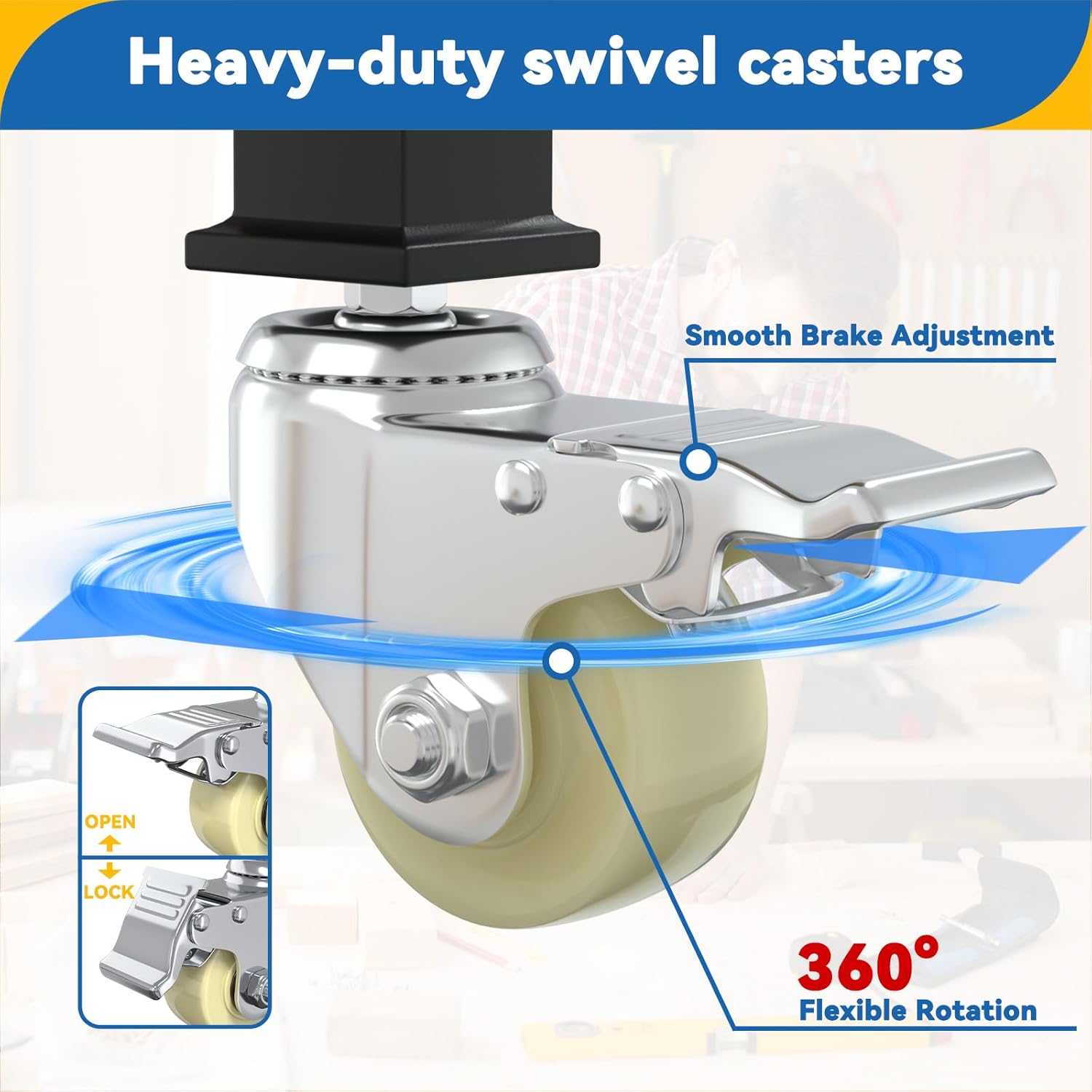 [Easy Mobility]: With four heavy-duty 360° locking casters, moving becomes effortless, providing mobility for your workstation anywhere.