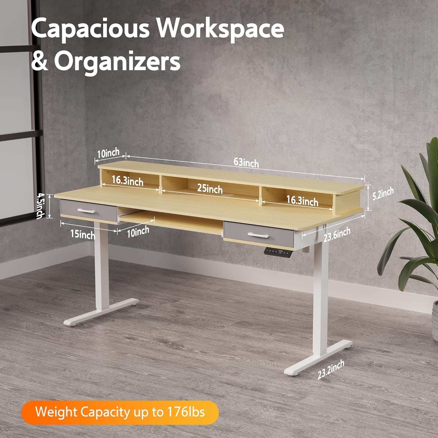Optimized for Work From Home: WALKINGDESK is dedicated to design muti-functional and ergonomic electric standing desk, improving home office environment. This stand up desk is made with industrial-grade carbon steel frame and built-in electric motor lift mechanism, max load 176lbs.