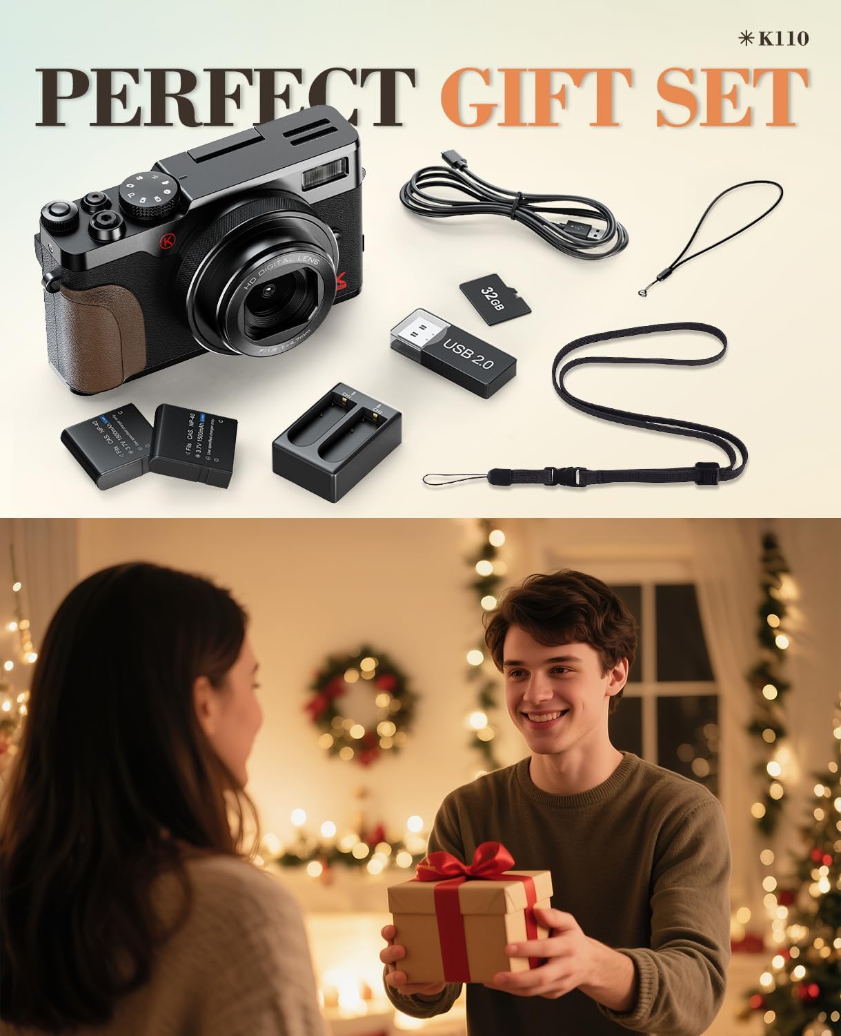【Perfect Gift Package with 32GB SD Card】This digital camera package includes a 32GB SD card and card reader, all in a stylish box, making it a thoughtful gift for birthdays, holidays, and special occasions. A perfect choice for anyone looking to start their photography journey!