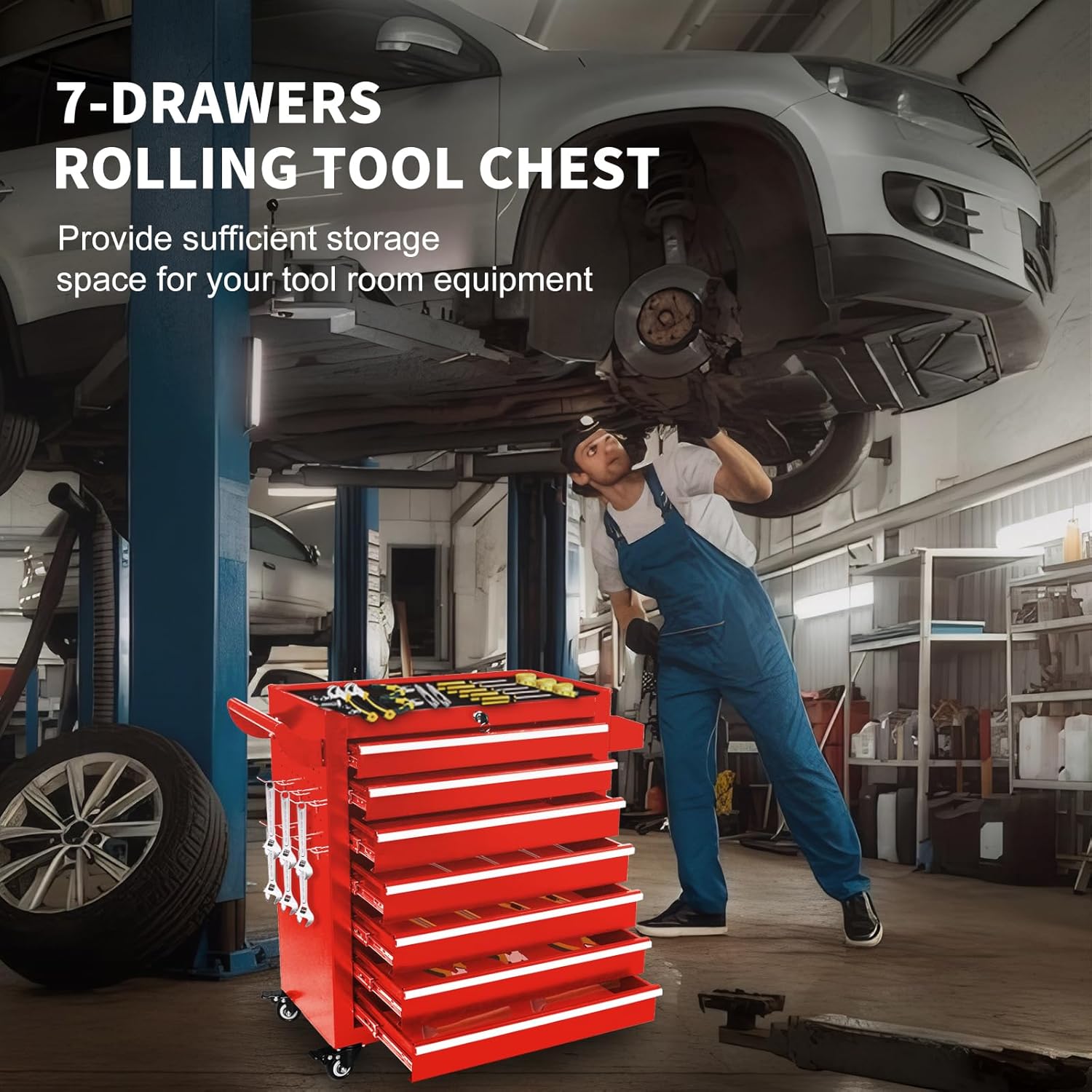Sufficient Storage Space: tool storage with 7 drawers is designed to store wrenches, screwdrivers, or power tools.