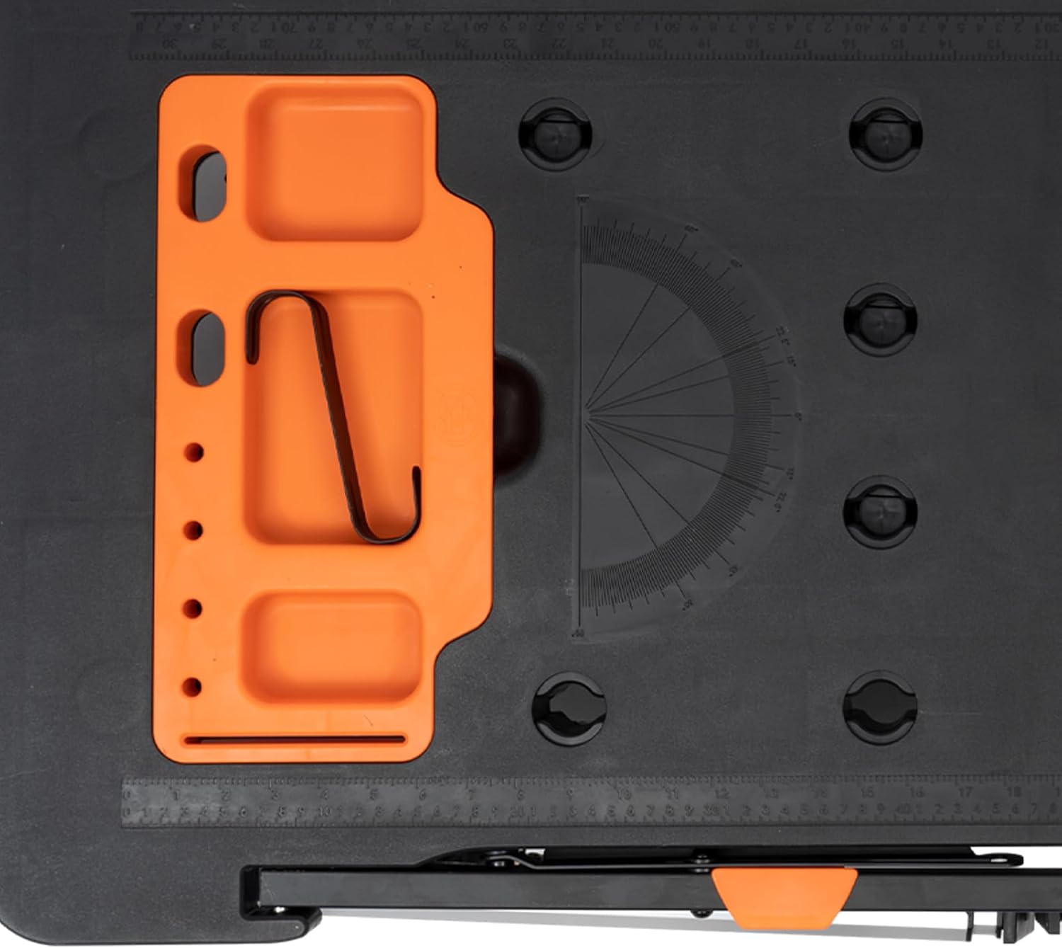 Efficient & Convenient: Equipped with a detachable tool tray, protractor, ruler, hook, toolbox, and fixture placement holes to keep tools (not included) organized and within reach, improving work efficiency.