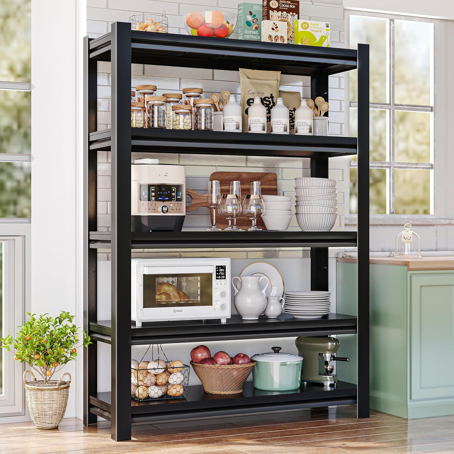 【Long-Lasting Garage Storage Shelve】Metal storage shelf is made of high intense premium cold rolled steel, with specially treated rust-resistant coating ensures that the rack remains shiny and new even in humid environments. Sturdy, durable and corrosion-resistant.