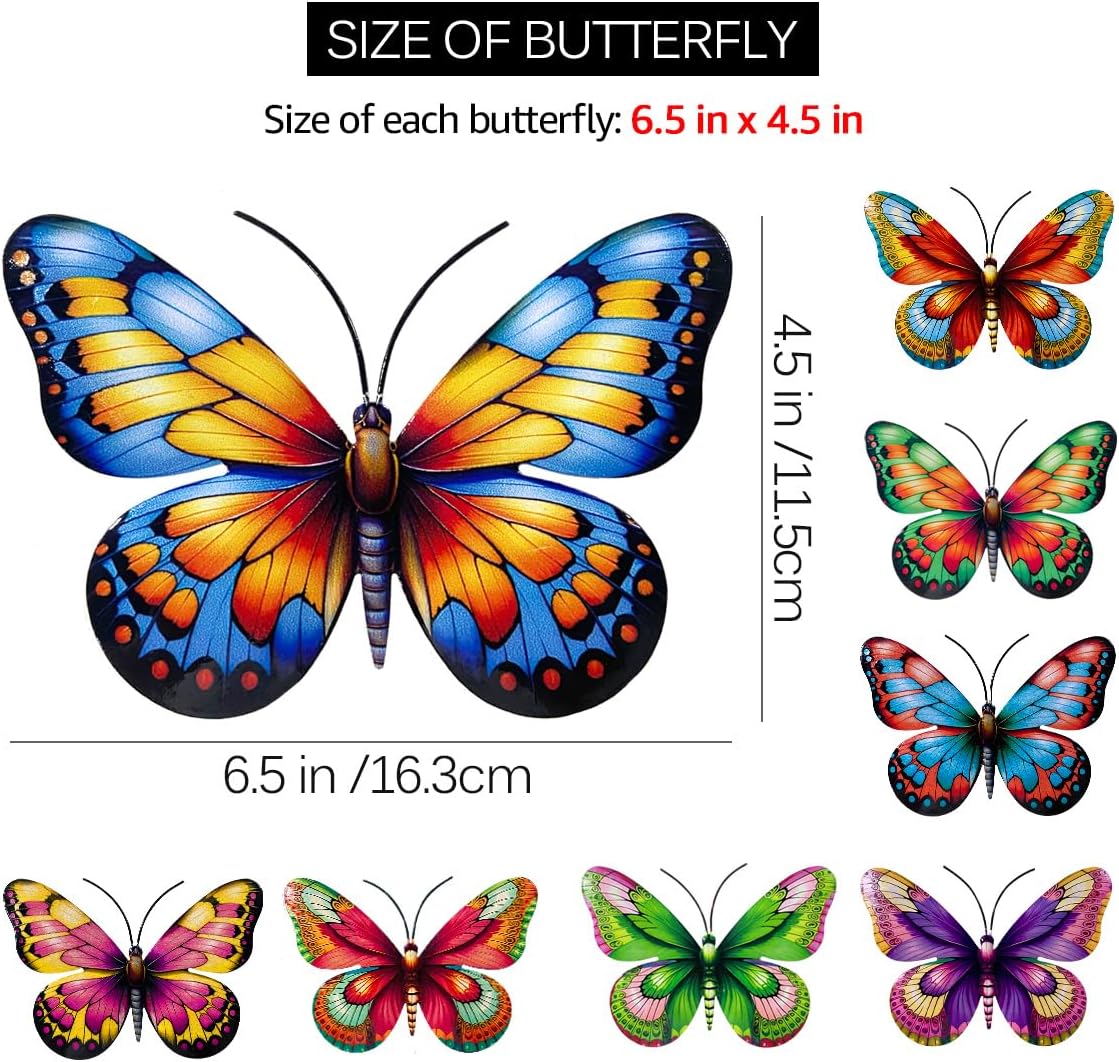 Butterfly Set: Set of 8pcs metal butterflies decorations, each one has a different pattern and color, bright colors, ideal decorations for outside.