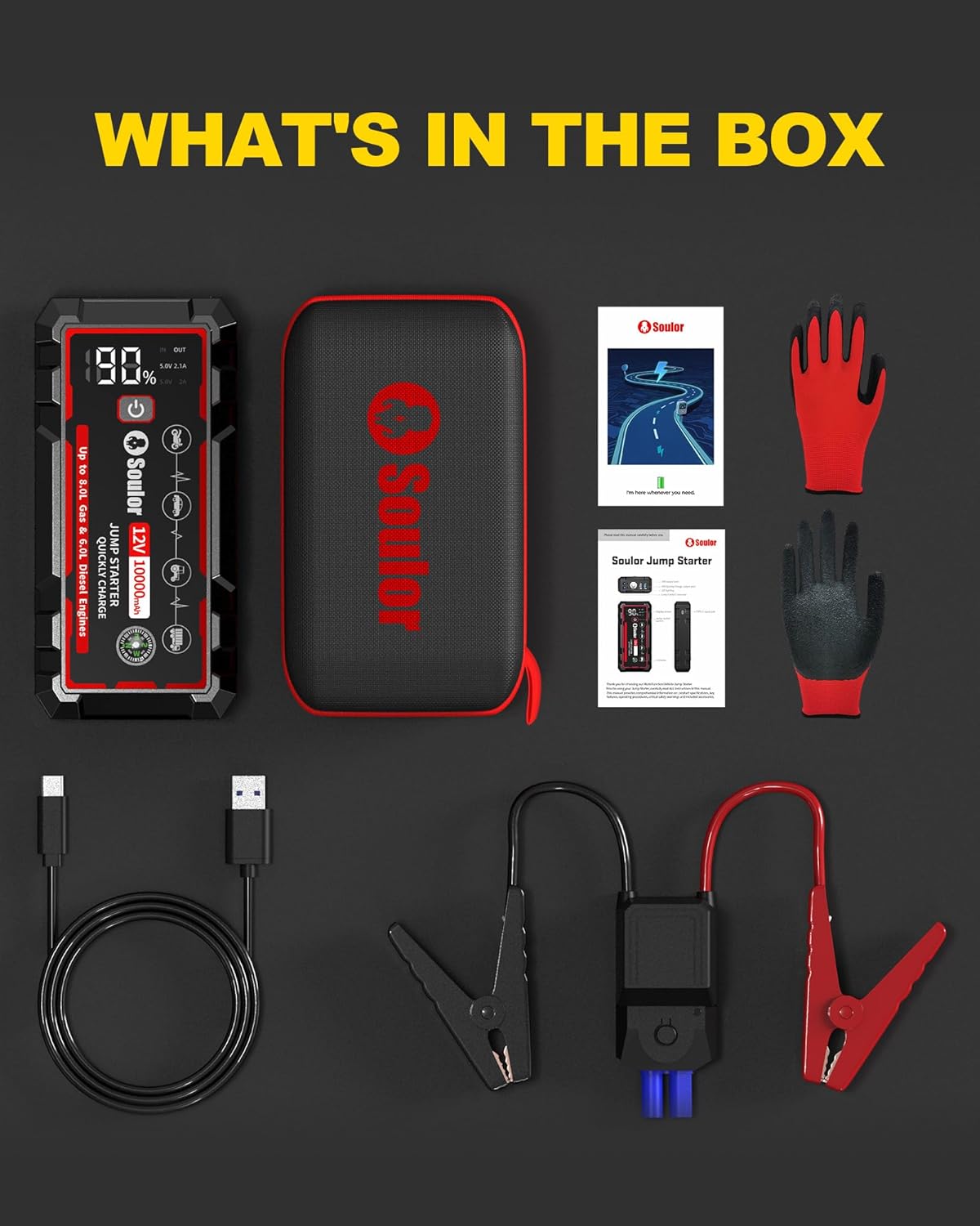 Full Package and Service : 1*Jump Starter, 1* Smart Jumper Cables, 1*USB-A to USB-C Cable, 1* User Manual, 1*Insulated Gloves, 1* Storage Bag. Backed by a 24-month service and 24 hours and 7 days customer support for your peace of mind