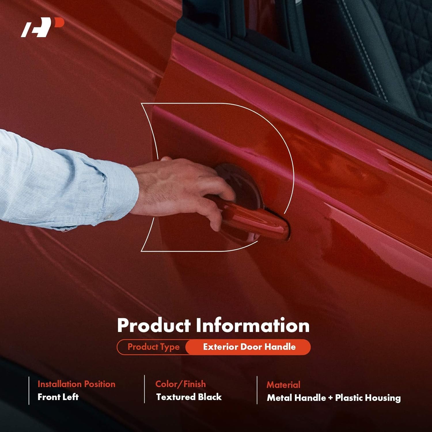 [Specifications]: ① Package Included: 1x Front Left Driver Side Exterior Door Handle; ② Color / Finish: Textured Black; ③ Material: Plastic Housing & Upgraded Metal Handle; ④ Key Lock Hole: Yes; ⑤ Condition: New; ⑥ Paintable: Yes