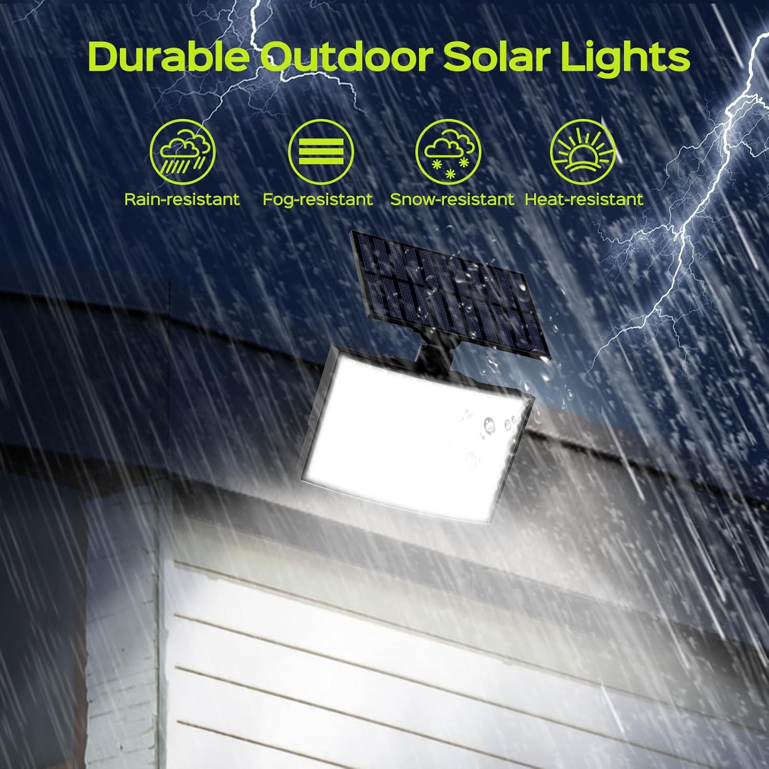 【Outdoor Solar Lights】The solar light is constructed from high-strength ABS and PC materials, offering excellent weather resistance and reliable performance in various weather conditions such as rain, frost, and extreme heat. These solar lights for outside are perfect for installation in garages, carports, yards, gardens, patios, sheds, gazebos, porches, gates, eaves, and other outdoor locations.