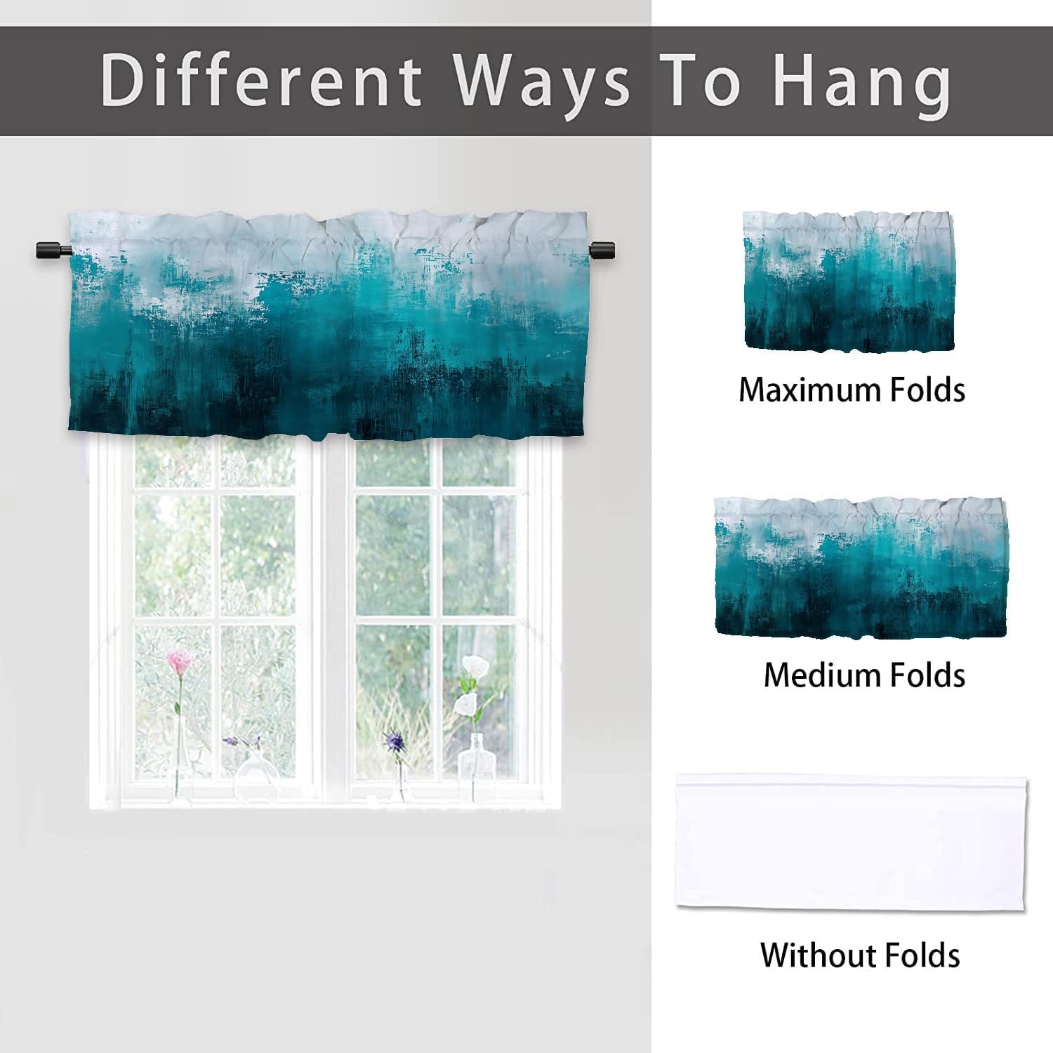 【Abstract Turquoise Window Valances】Elevate the look of any space with these stylish window valances. Perfectly suited for kitchens, living rooms, bedrooms, bathrooms, and dining areas, they add a decorative flair to both modern and traditional interiors, as well as farmhouse settings.
