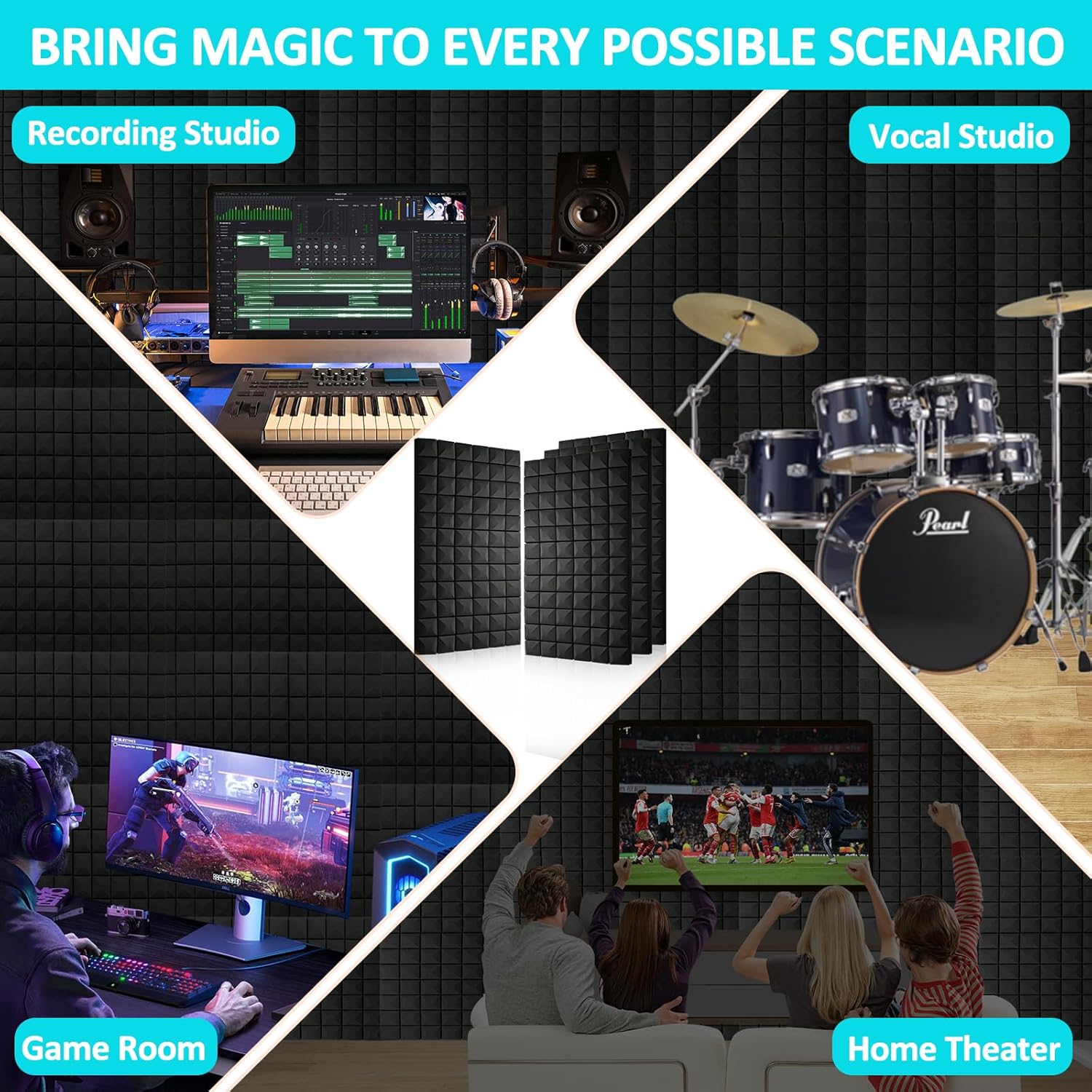 【Easy Installation】 With a convenient size of 48”X24”X2”, these soundproof foam panels are easy to install on walls or ceilings in recording studios, home theaters, offices, or any space requiring noise reduction for enhanced productivity and comfort