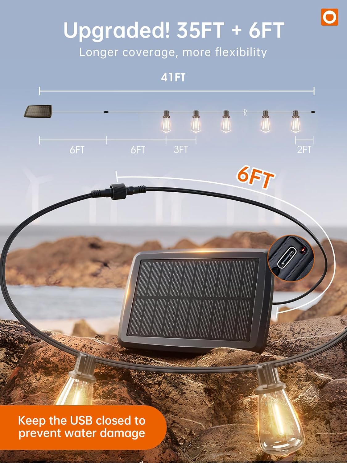 addlon Promise: This 35FT solar string light set includes 11 shatterproof Edison-style bulbs (with 1 spare) for reliable performance and style. Backed by addlon’s 1-year quality support, If the wire is damaged or frayed, it may compromise the waterproof performance and pose a safety risk. Please stop using the lights immediately and contact us—we will replace them for you