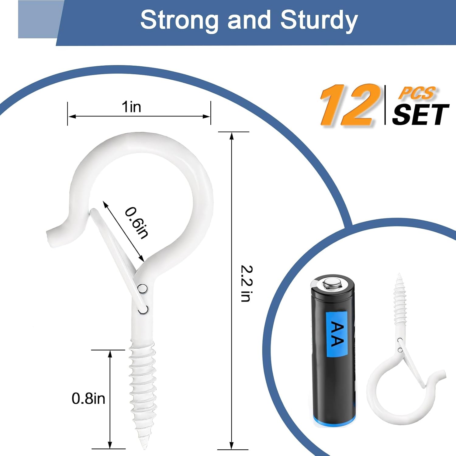 10 reviews for ADIIL 12 PCS Q Hanger Hooks with Safety Buckle, Windproof Screw Hooks for Hanging Outdoor String Lights, Plants, Christmas Patio Lights, 2.2 Inches, White